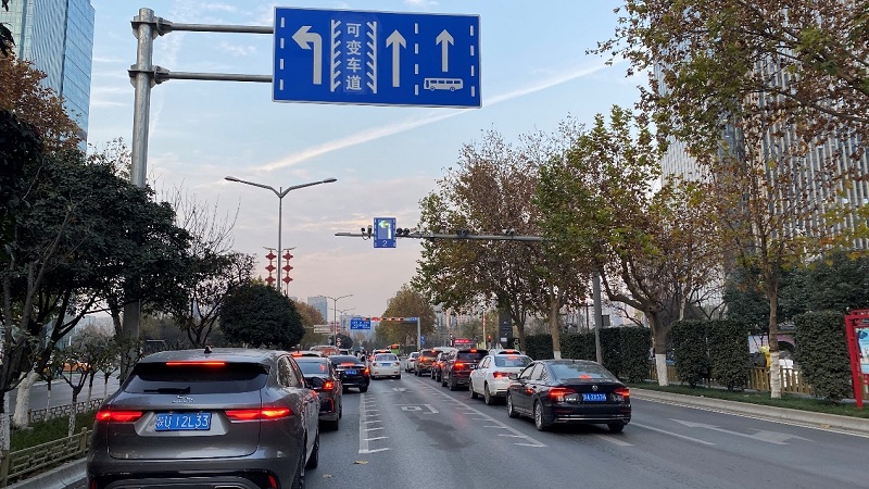 12月13日,网约车司机陈国强发现北大街-莲湖路南进口多了一条可变车道,车道上方有一块发光的指示牌,这条车道是直行或者转弯,可以根据车流量进行自动调控。