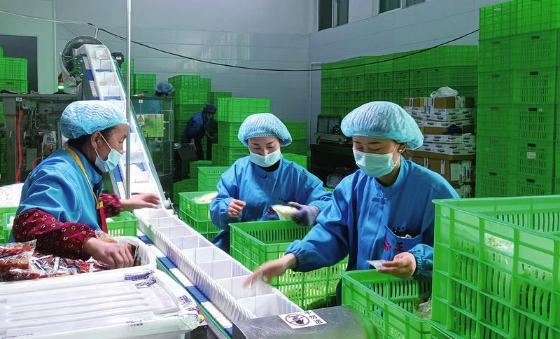近日,在岐山县蔡家坡物流电商产业园内,宝鸡岐正香食品有限公司的工人正在包装擀面皮。