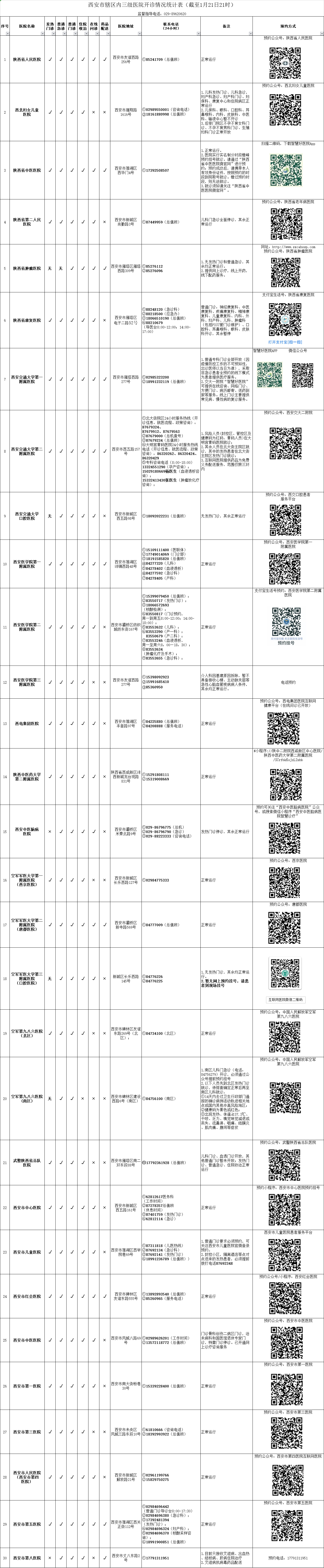 最新!西安市辖区内三级医院开诊情况统计表(截至1月21日21时) 来源:西部网-陕西新闻网 2022-01-22 08:28 西部网讯 记者从陕西省卫健委获悉,截至月1月21日21时,西安市辖区内三级医院开诊情况如下。