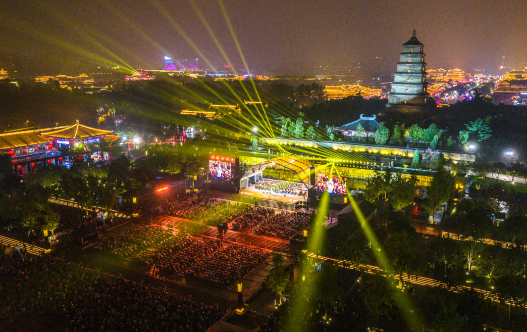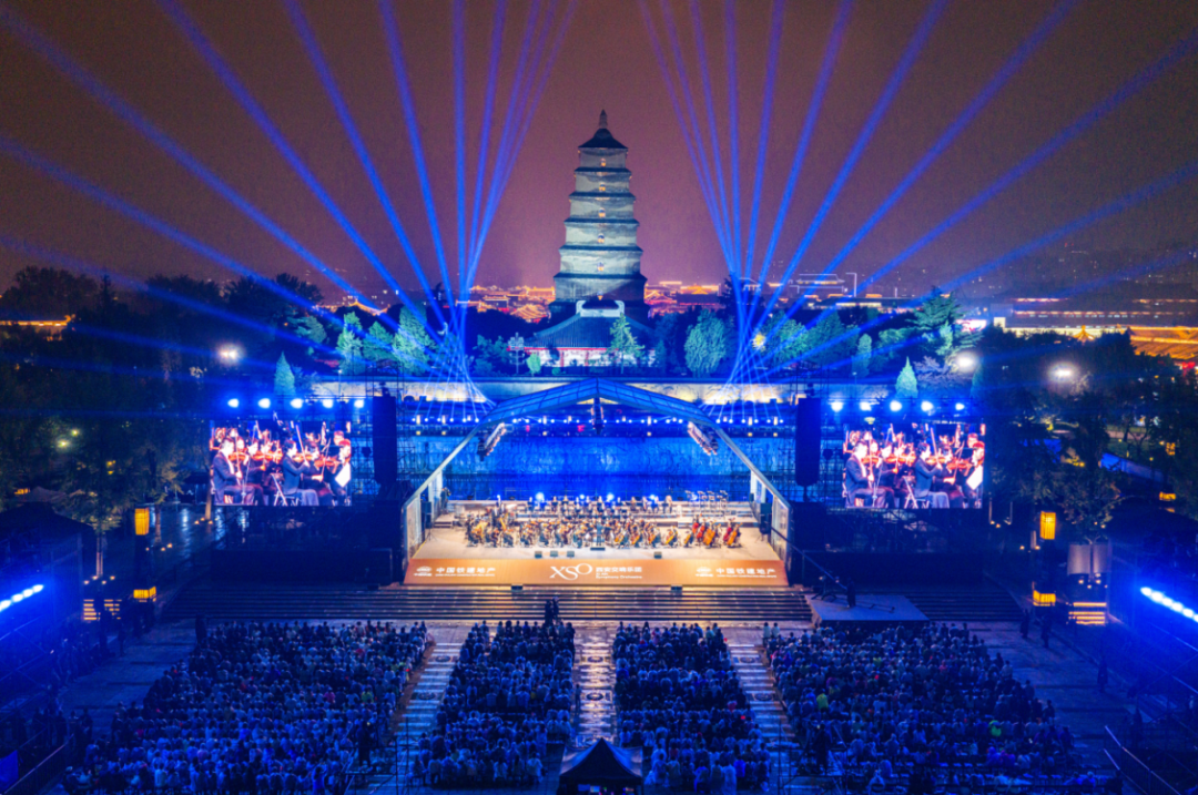 “古今交响乐长安,琴瑟和鸣颂雁塔。”当金秋桂香漫溢千年古都,9月20日晚,2025 西安交响乐团大雁塔户外公演再度如约奏响。八方乐音汇聚长安,在千年古刹的飞檐下乘风而起,抵达数千现场观众与千万网友的耳畔。央视频、新华社、人民日报等90家媒体同步直播,累计观看量突破1536万次,为全国乐迷奉献一场全民共享的文化盛典。