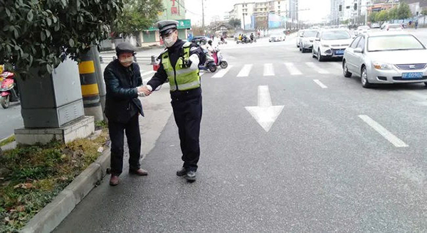 2月28日12时许,交警一大队一中队民警赵哲与辅警陈昌豪正在汉台区东门桥十字路口紧张执勤,发现一名老人在路口久久徘徊,并带有几分焦急,这立即引起了民警的警觉,据以往的经验推断这应该是位走失的老人。为防止老人发生不安全事故,他们迅速前往路口将老人扶至路边,并耐心询问老人的姓名、家庭住址、家属的情况及联系电话。