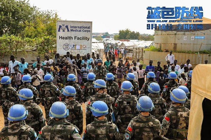 截至目前,我国已连续派遣了6批次的维和步兵营远赴南苏丹执行维和任务,正如在定档预告中,“请跟随我们,我们会将你们带到安全的地点”,中国军人接力出征,将和平与安全的希望一路播撒,用实际行动兑现着维护世界和平的郑重承诺。中国蓝盔,已成为南苏丹这片红土地上一道象征和平的蓝色风景线。而电影《蓝色防线》不仅真实生动地展现了“蓝盔英雄”为维护世界和平与发展作出的重大贡献,同时,也从一个侧面彰显了中国用行动与实践推动构建人类命运共同体的大国担当,传递着人道主义的大爱情怀。