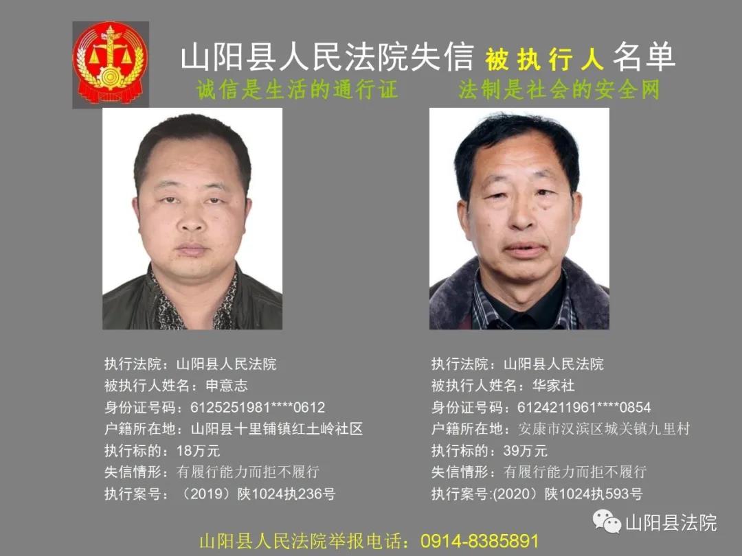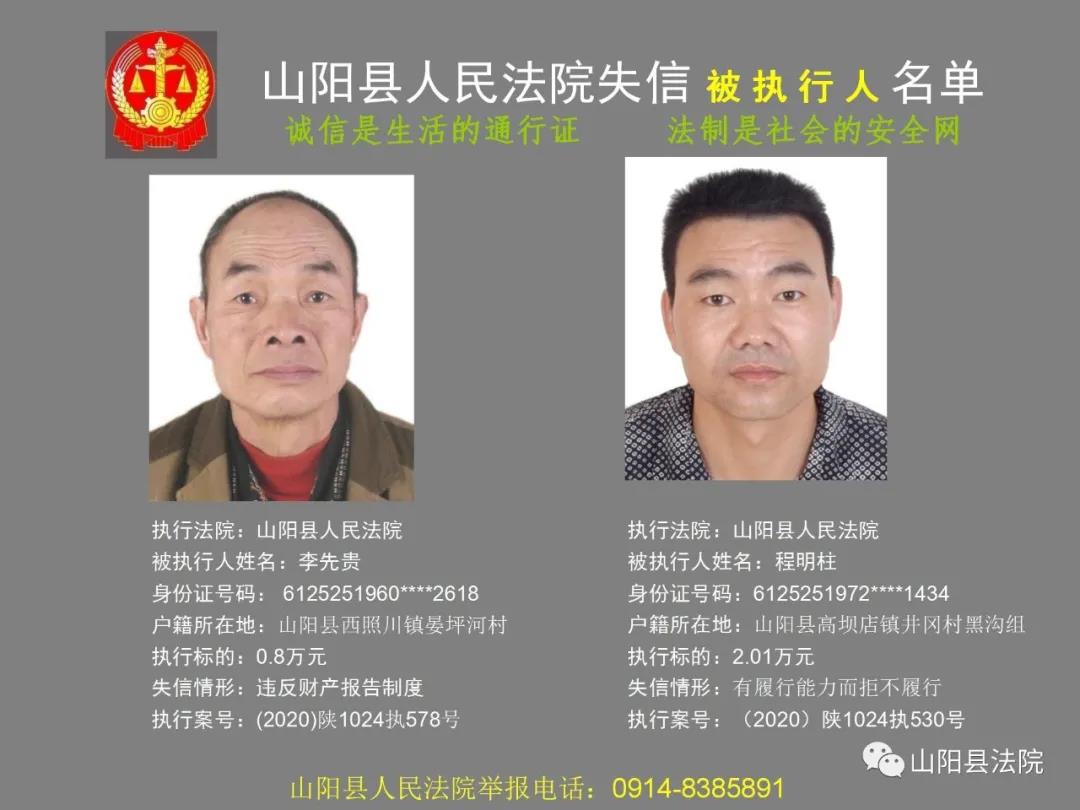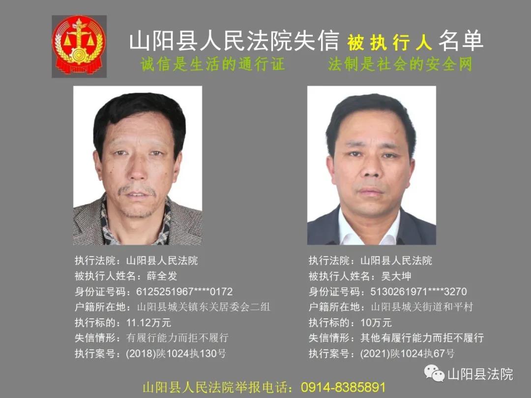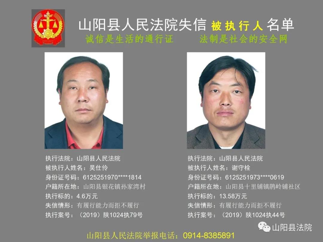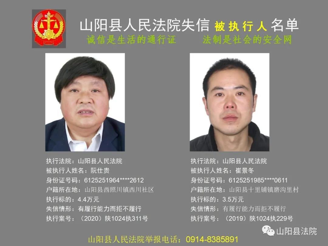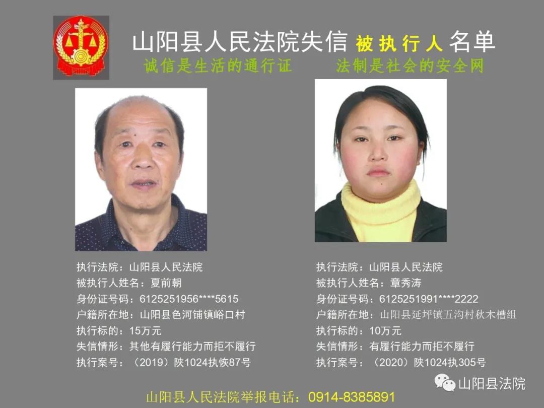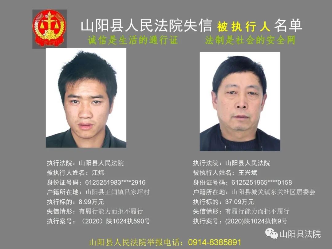 山阳县人民法院集中曝光一批失信被执行人名单!