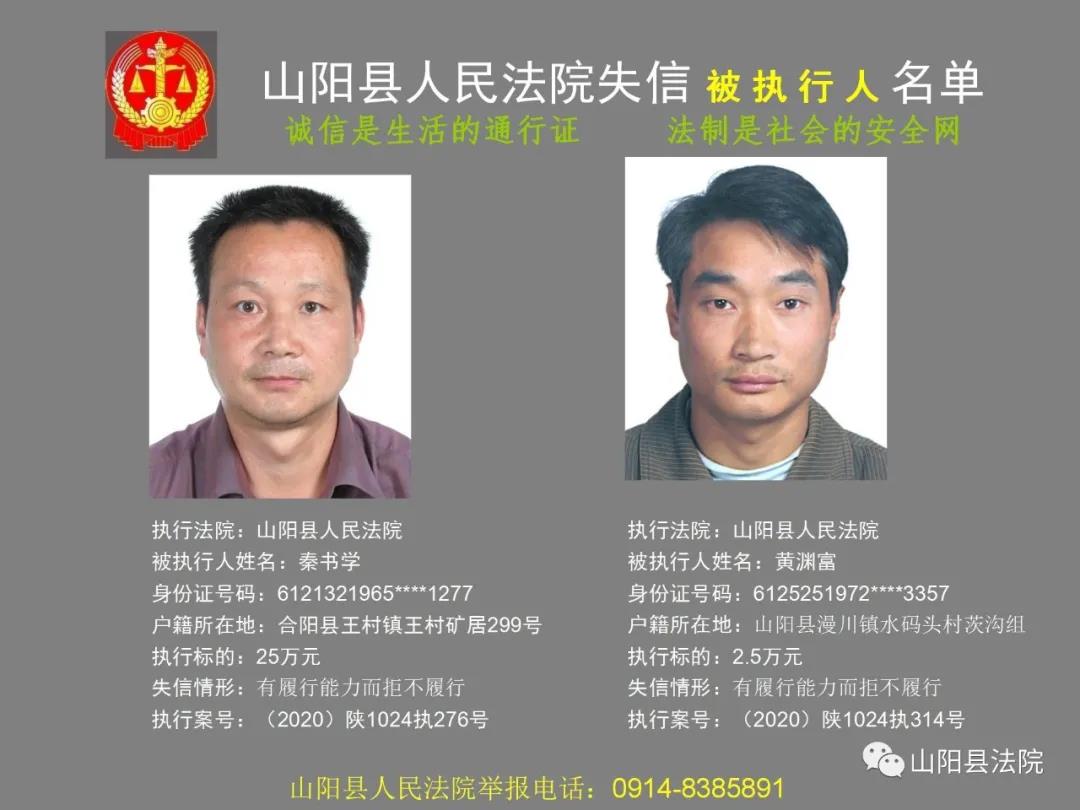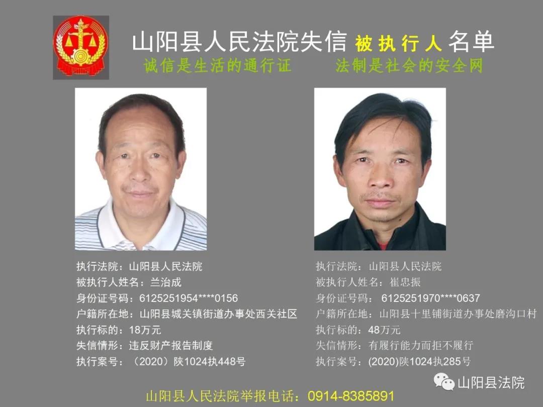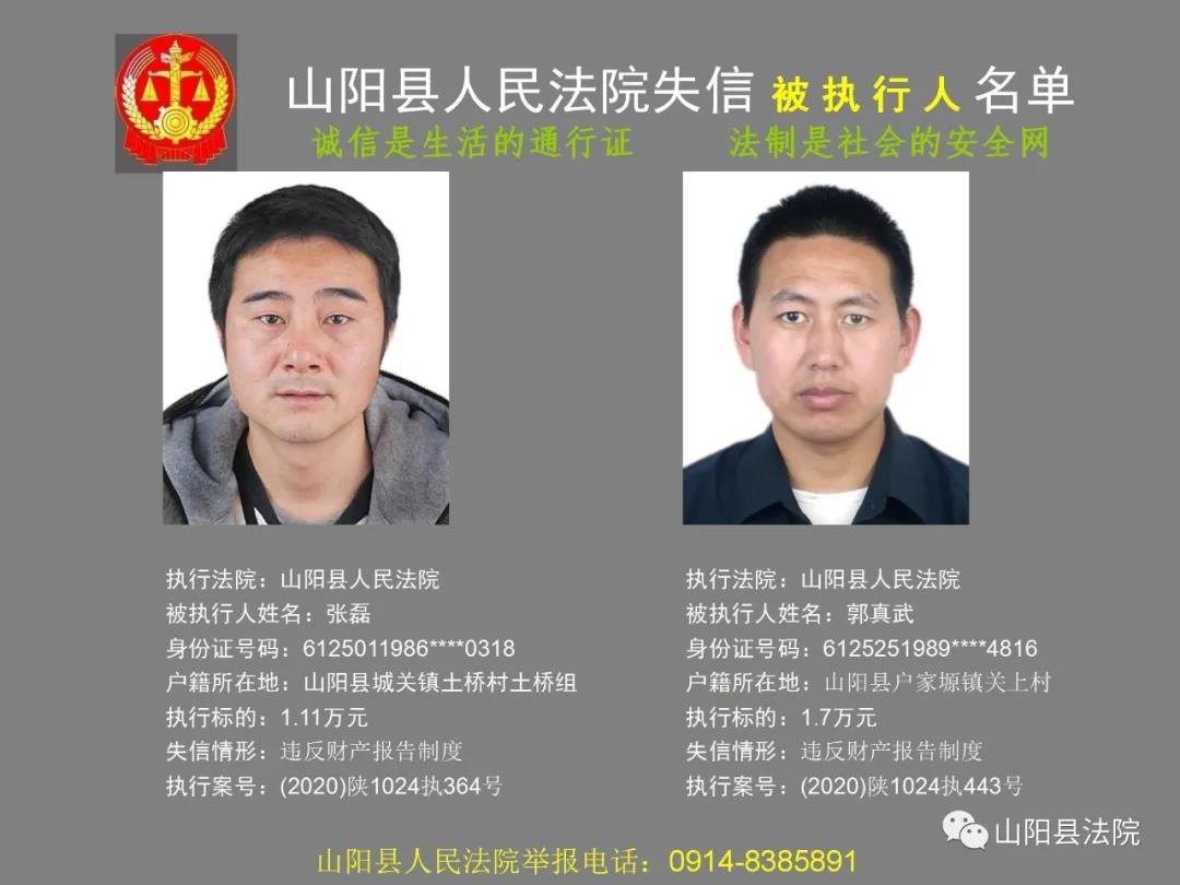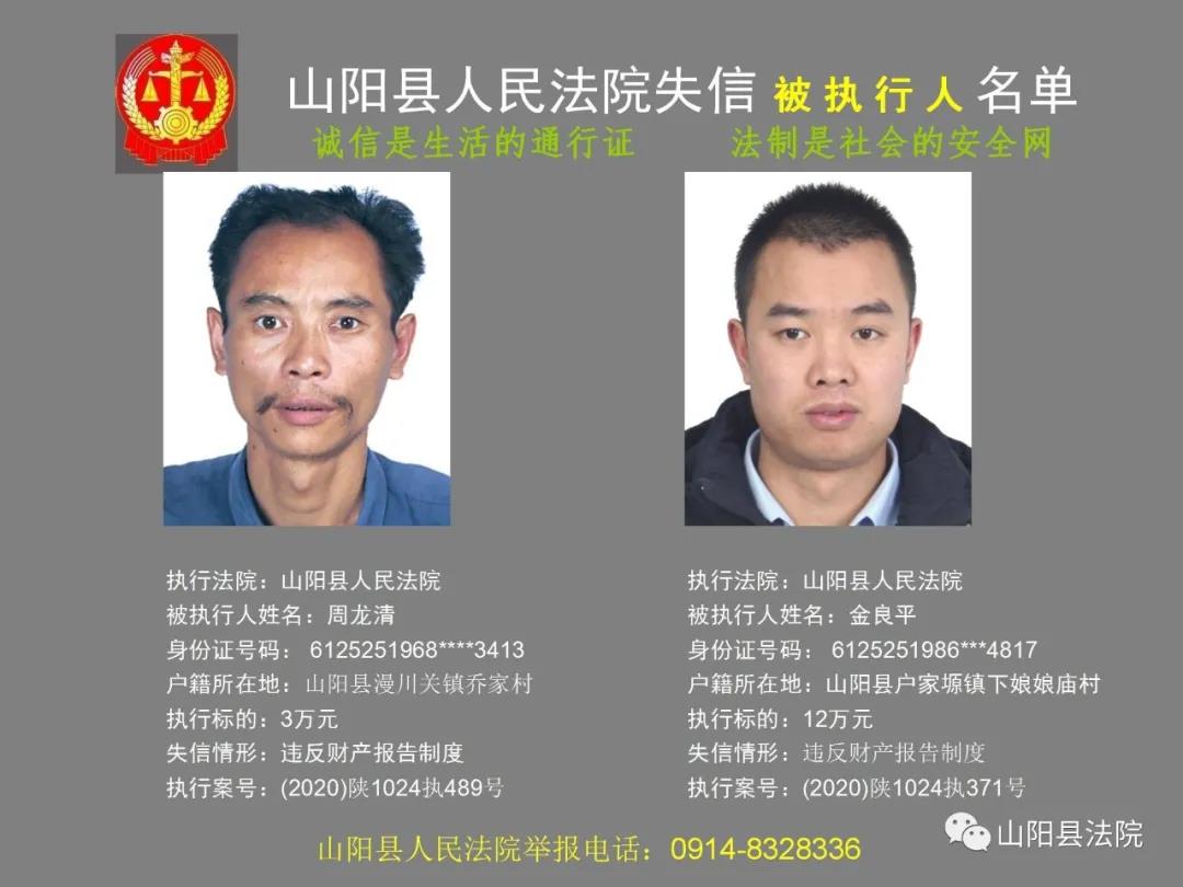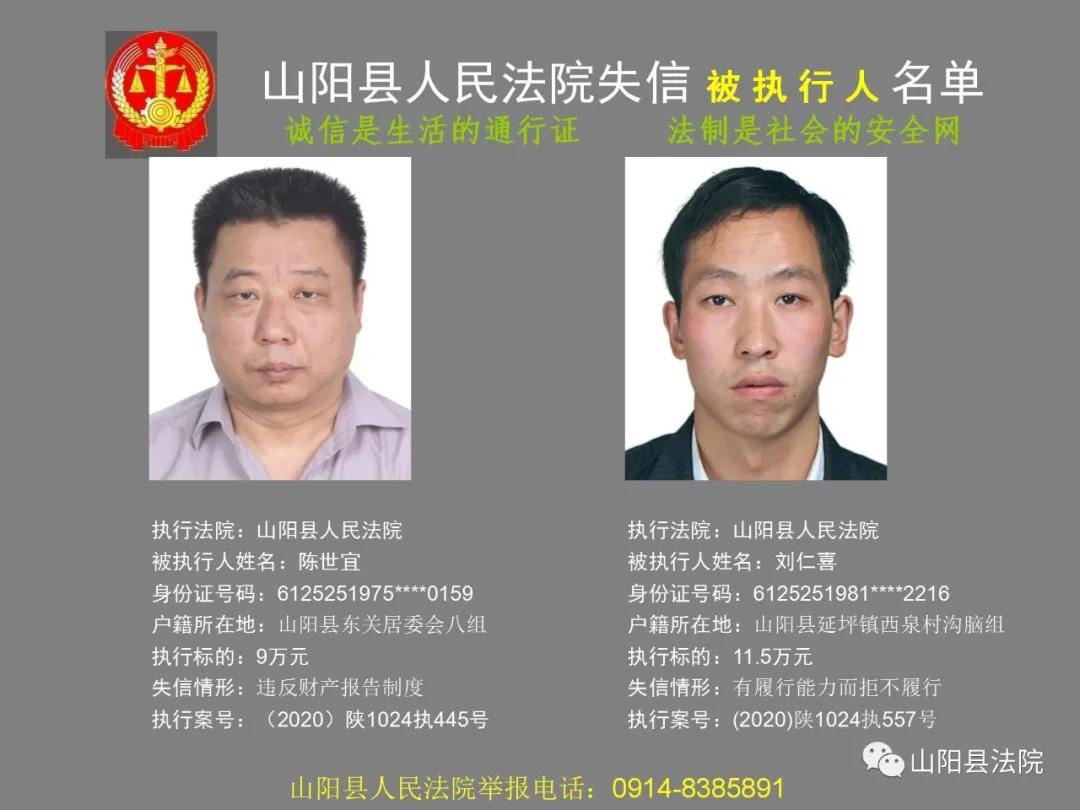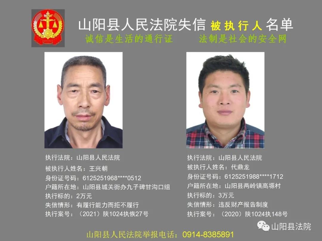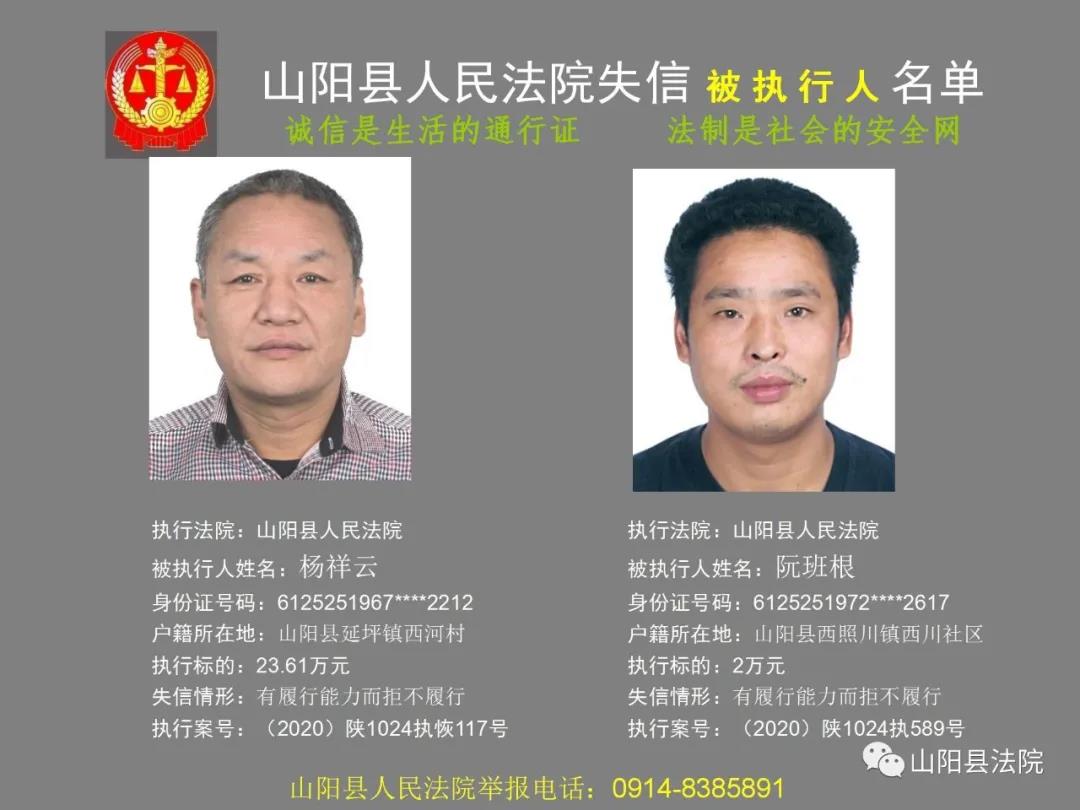 山阳县人民法院集中曝光一批失信被执行人名单!