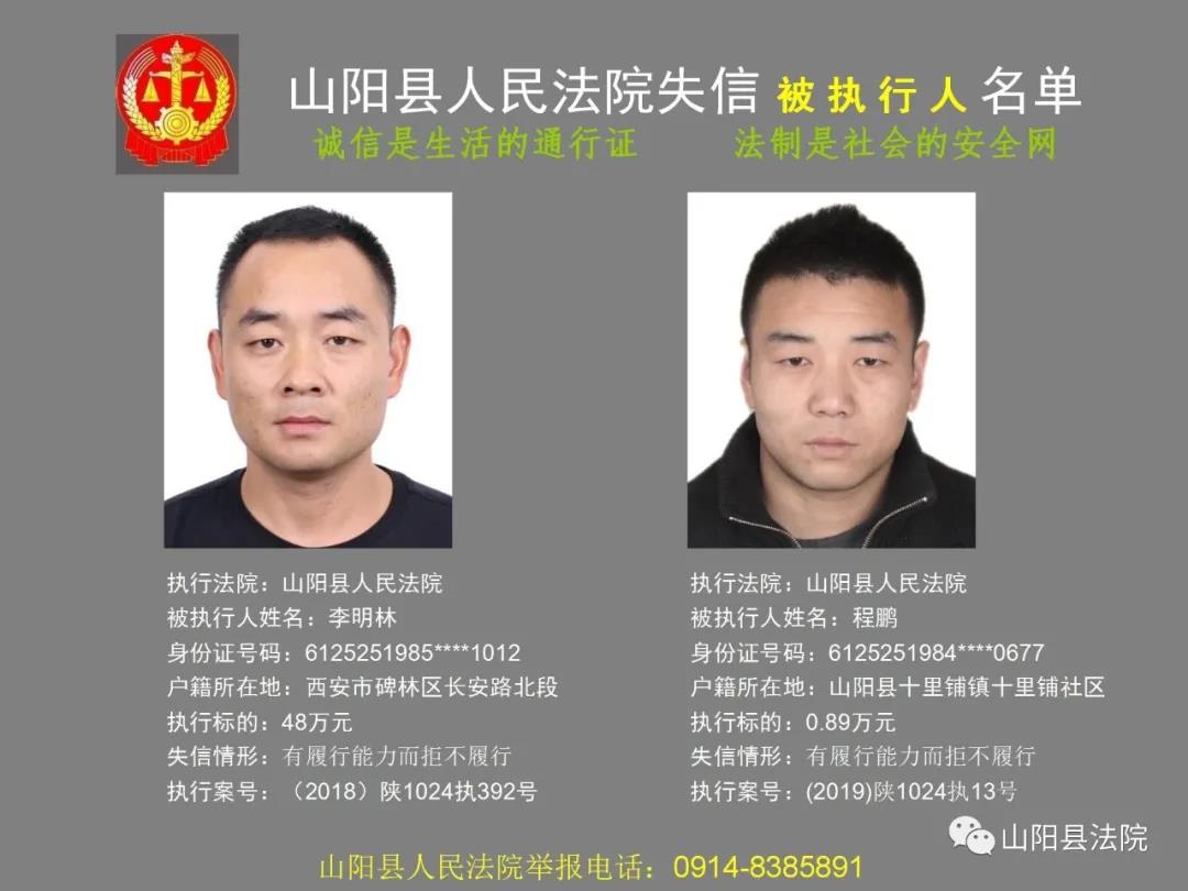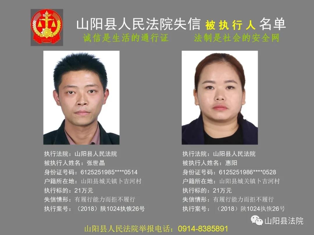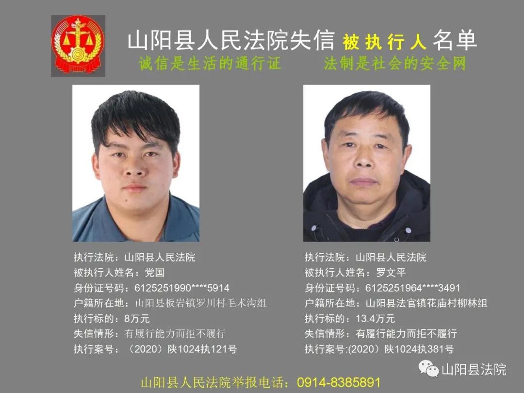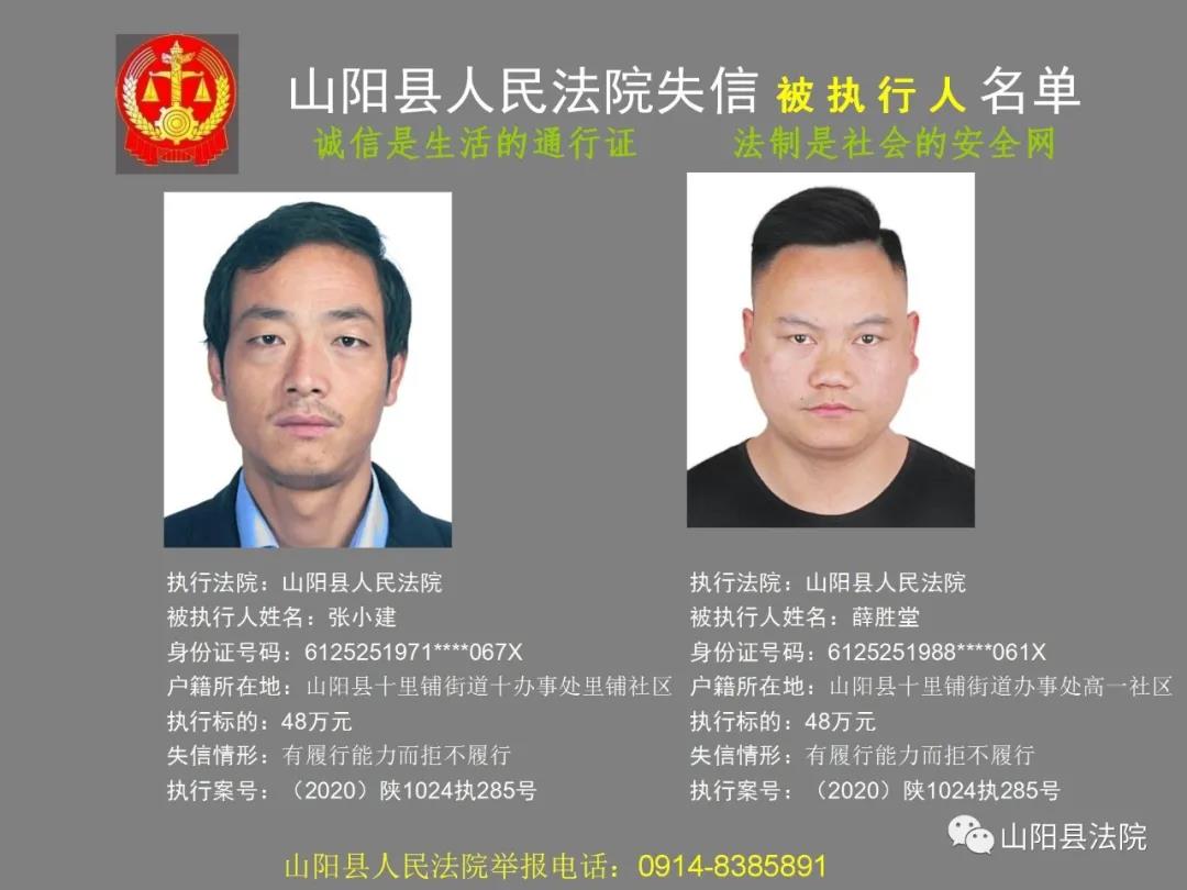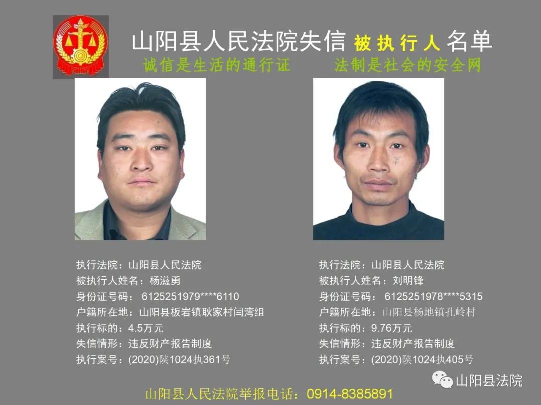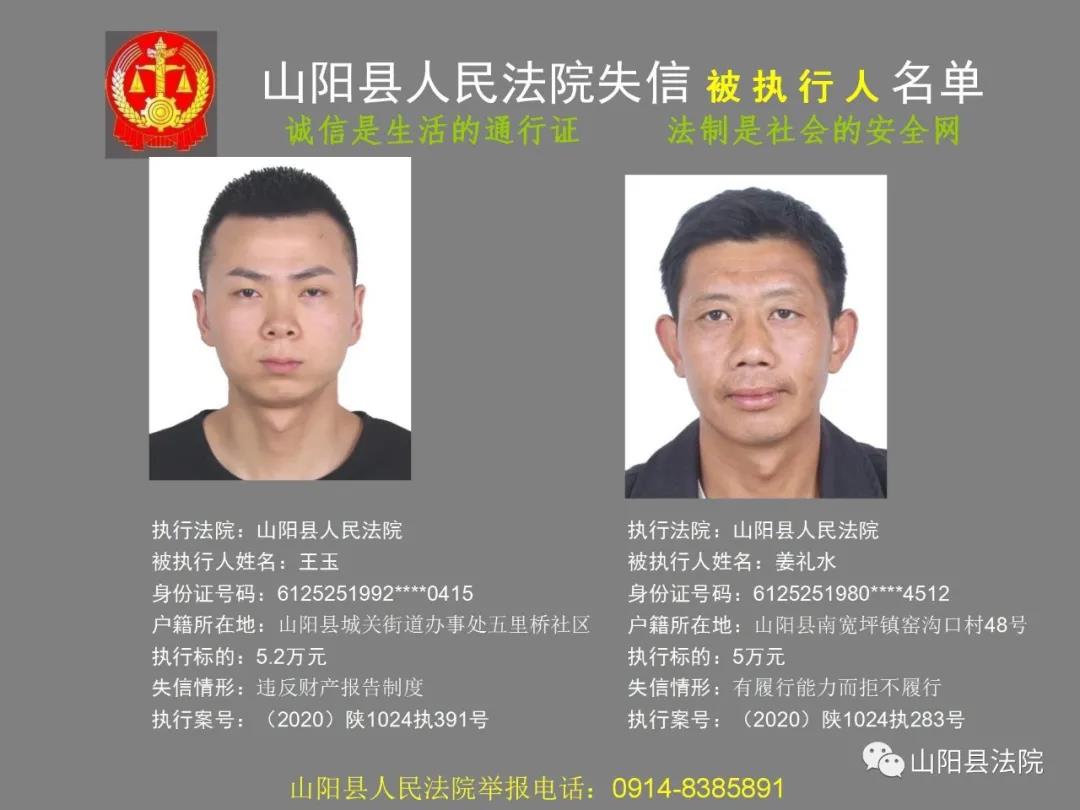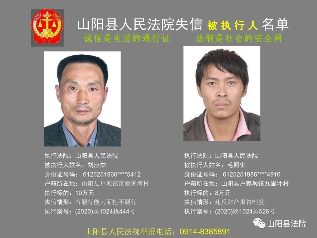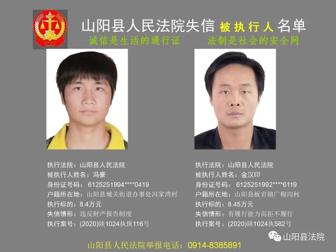 山阳县人民法院集中曝光一批失信被执行人名单!