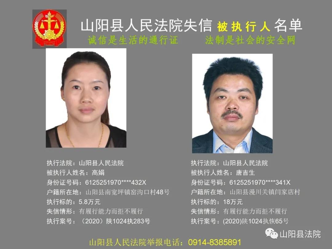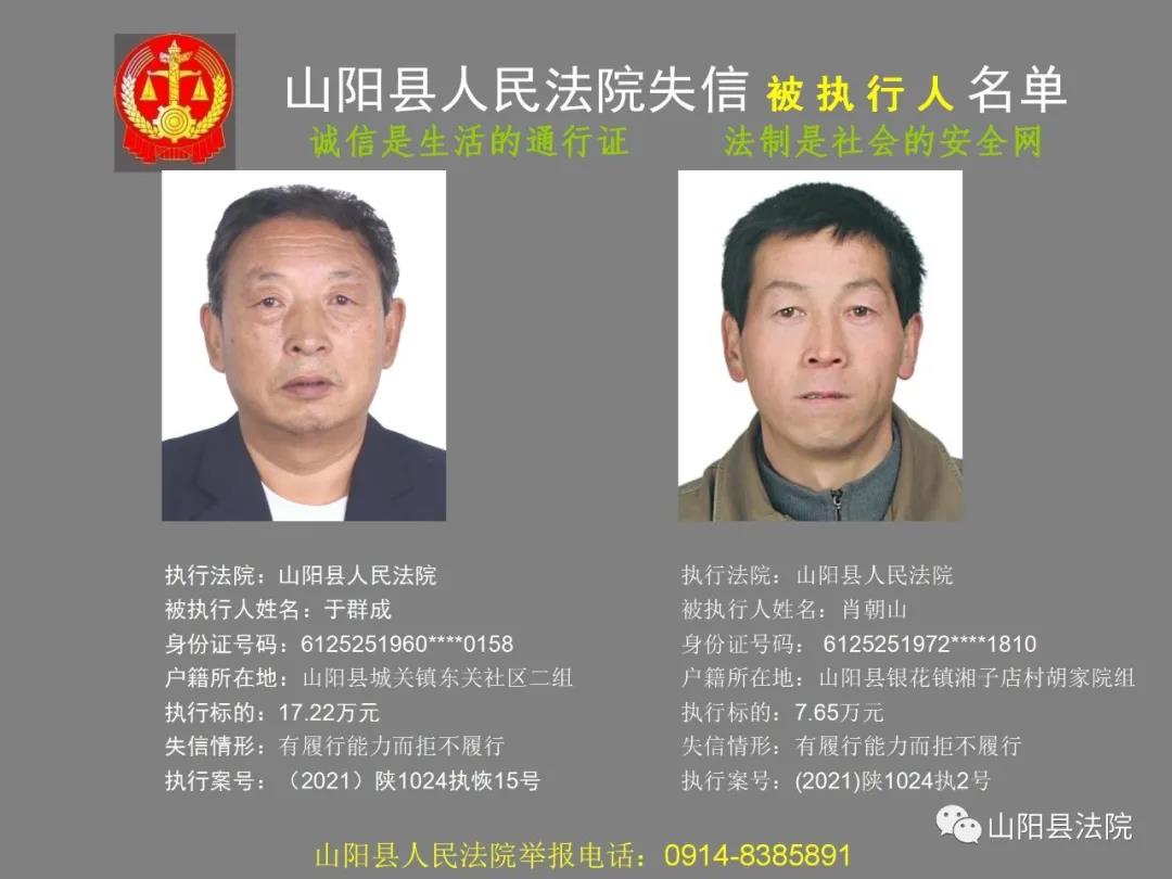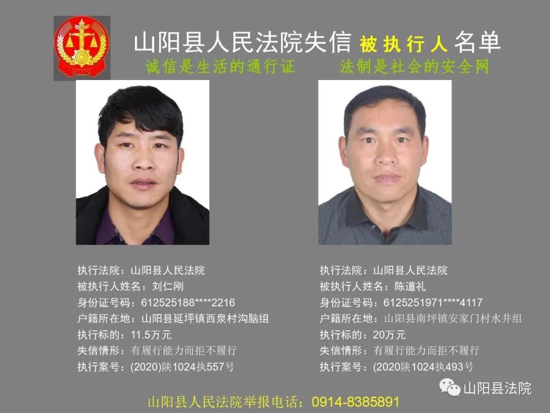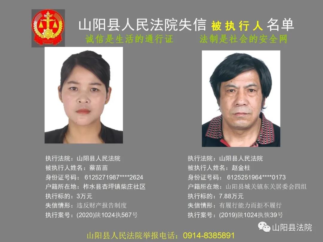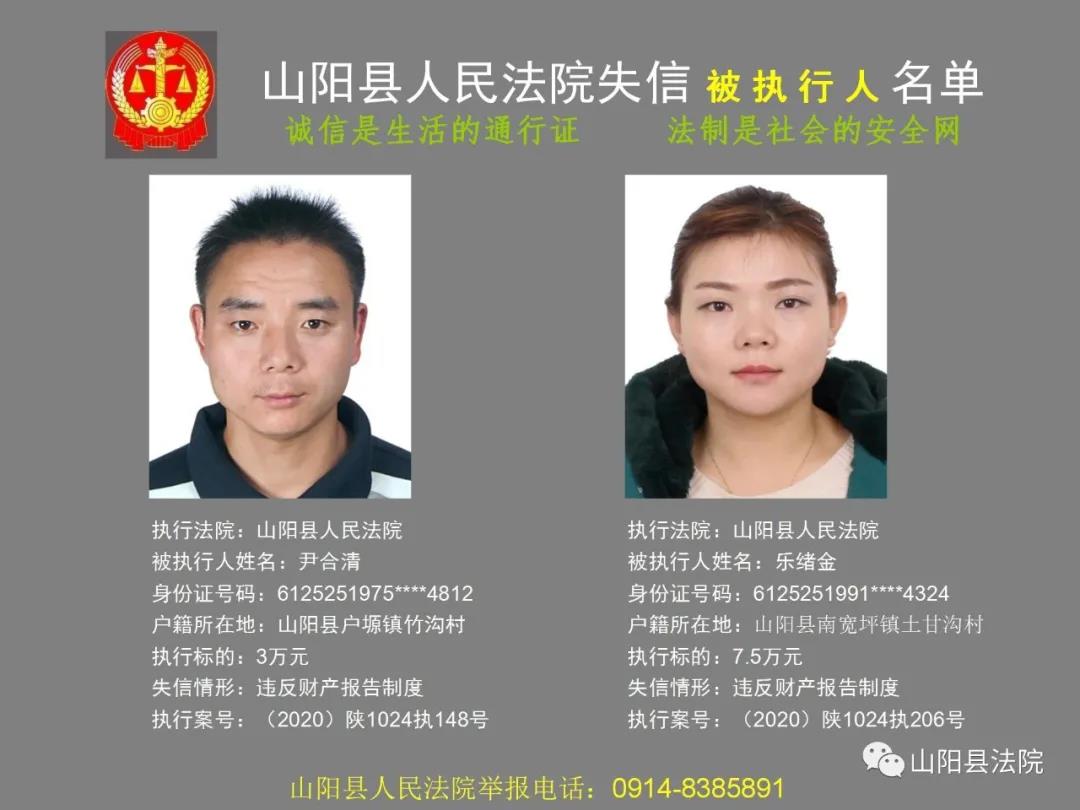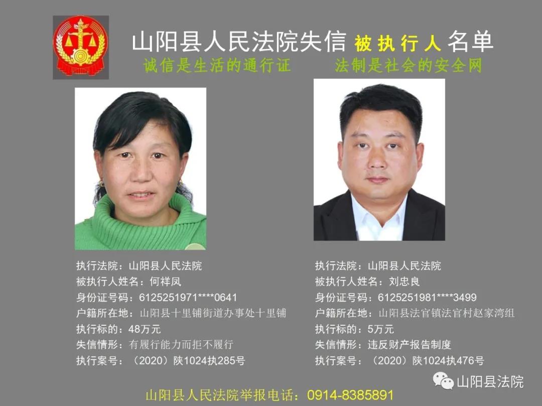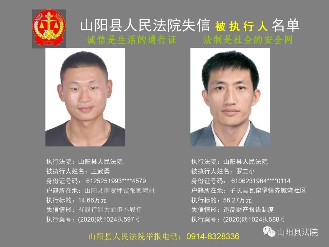 山阳县人民法院集中曝光一批失信被执行人名单!