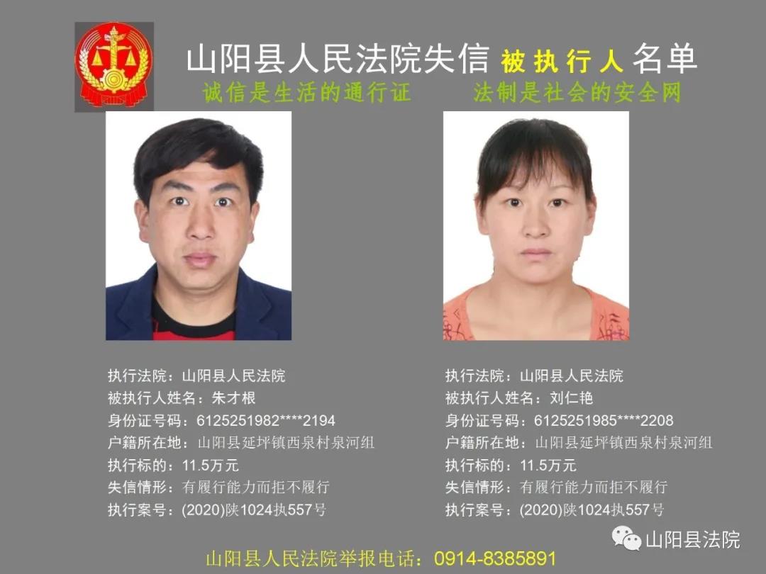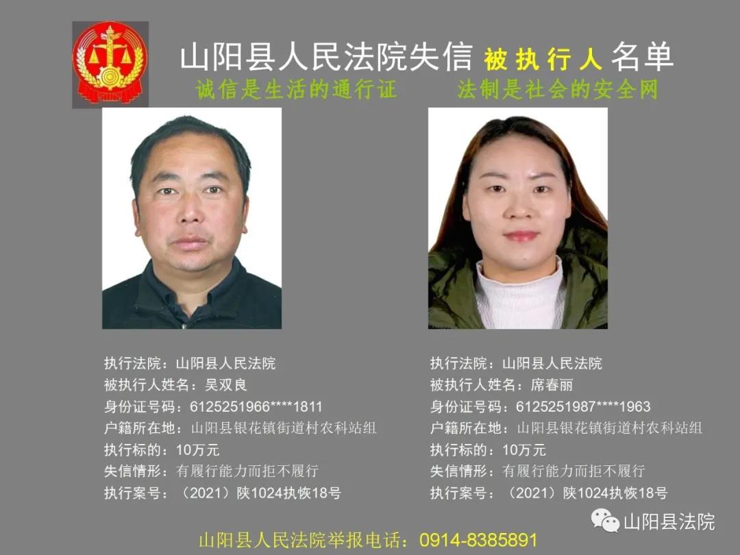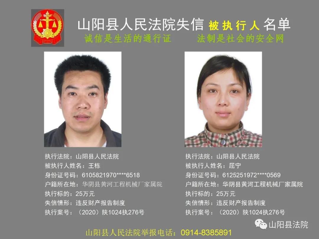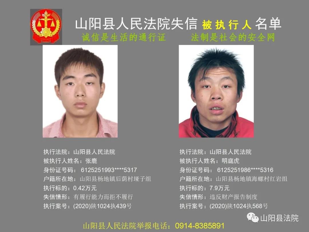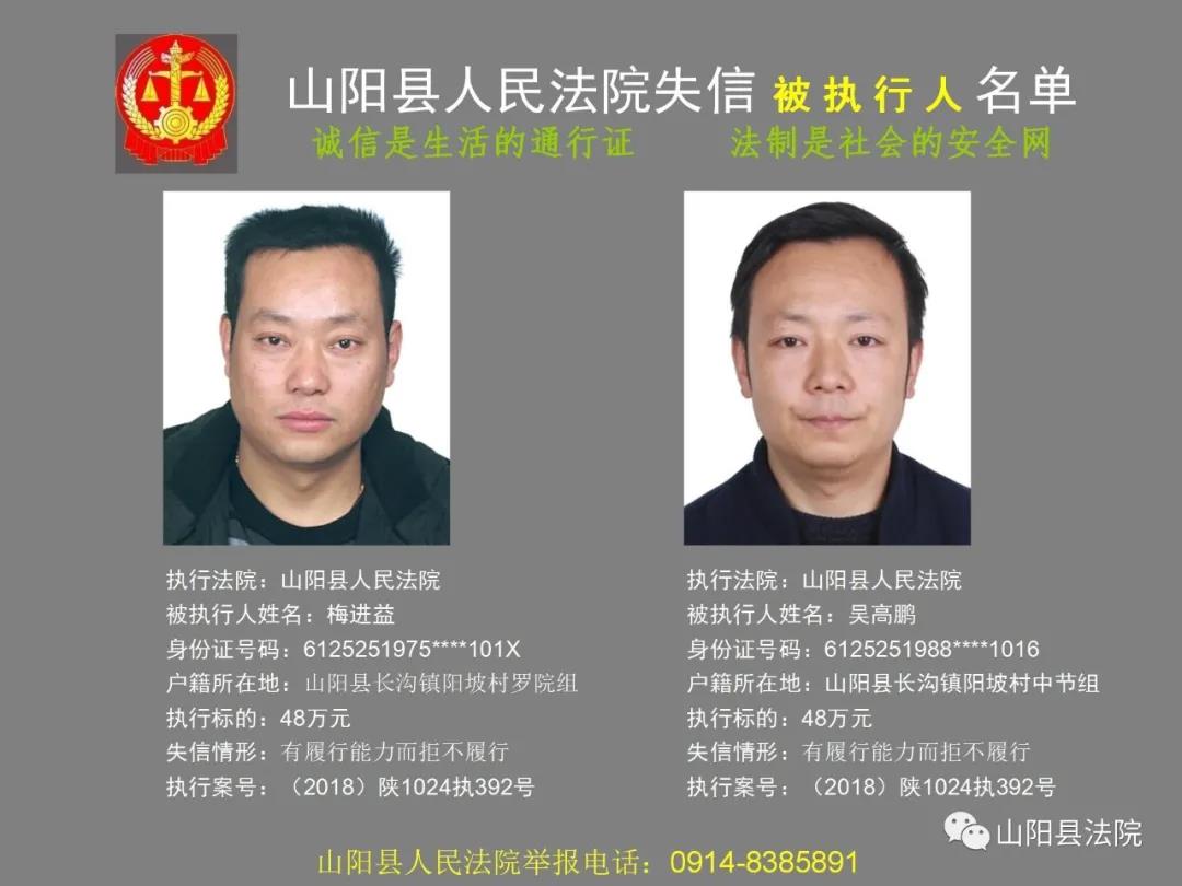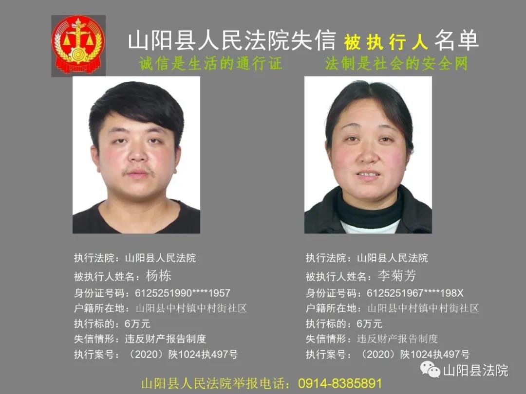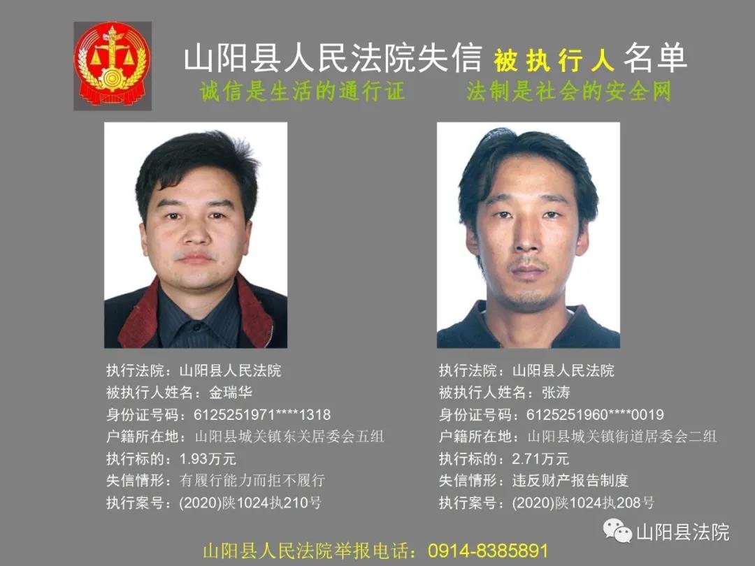 山阳县人民法院集中曝光一批失信被执行人名单!