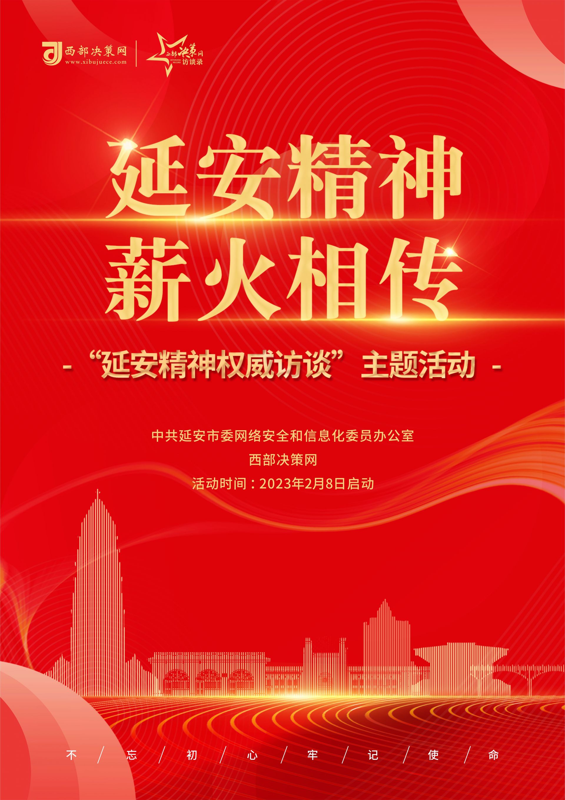 本次活动由延安市委网信办、西部决策网联合举办,旨在深入贯彻落实习近平总书记在瞻仰延安革命纪念地时的重要讲话精神,传承红色基因,坚定文化自信、增强历史主动,用充足充沛的网络正能量激励党员干部和广大网民弘扬伟大建党精神和延安精神,为实现党的二十大提出的目标任务而团结奋斗。