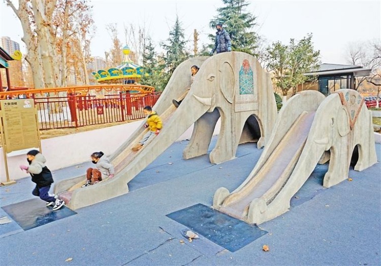 童年的“大象” 你还记得吗?兴庆宫公园大象滑梯重新投入使用