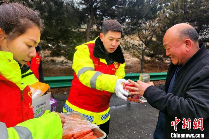 图为志愿者为滞留司乘人员提供餐食。 陕西交控集团供图