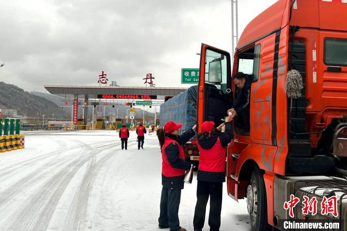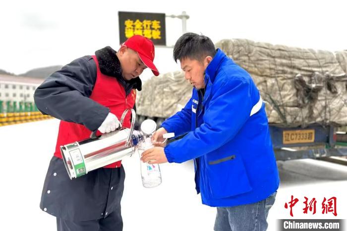 图为志愿者为滞留司乘人员提供热水服务。 陕西交控集团供图
