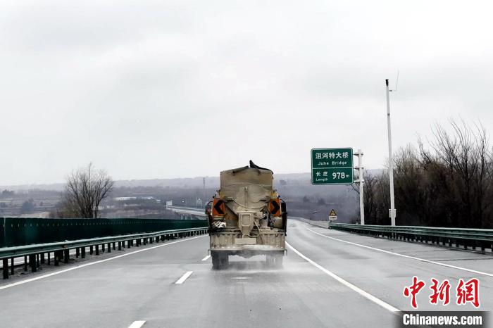 图为车辆正撒布融雪剂,防止道路结冰。 陕西交控集团供图