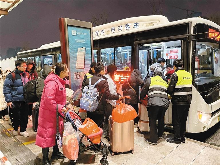 “我出站时3∶20,完全没想到还有公交车能坐,这么冷的天气你们真的很辛苦,谢谢你们。”来自湖南的郭先生上车后称赞道。21日凌晨,西安公交集团第六分公司九车队执勤队针对道路积雪及冰冻情况进行全面排查反馈,保证每一列高铁到站后都有公交“兜底”接驳,让每一位乘客都有车可坐。在西安北站南广场公交枢纽站,应急接驳公交乘车点的值岗人员帮助乘客搬拿行李、答疑解惑、指引乘车。