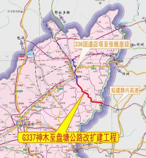 G337神木至盘塘公路位于神木市境内东南部,是连接秦晋两省的一条重要省际公路,也是陕北地区煤炭化工产品外运的重要通道。G337神木至盘塘公路改扩建工程是在神盘二级公路基础上改扩建为一级公路。项目起于神木市张板崖村,止于马镇镇盘塘村,与已建成山西省静兴高速公路黄河特大桥顺接,全长51.167公里,双向四车道,设计速度每小时60公里,计划于2025年建成通车。神盘公路改扩建项目的建成,对提高区域公路网的整体服务水平和通行能力,具有十分重要的意义。