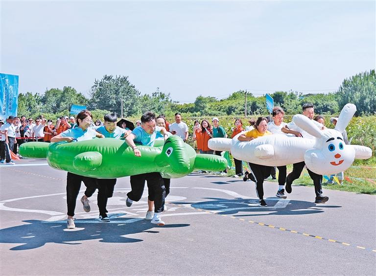 参赛者在龟兔赛跑项目中激烈角逐 记者 谢伟 摄