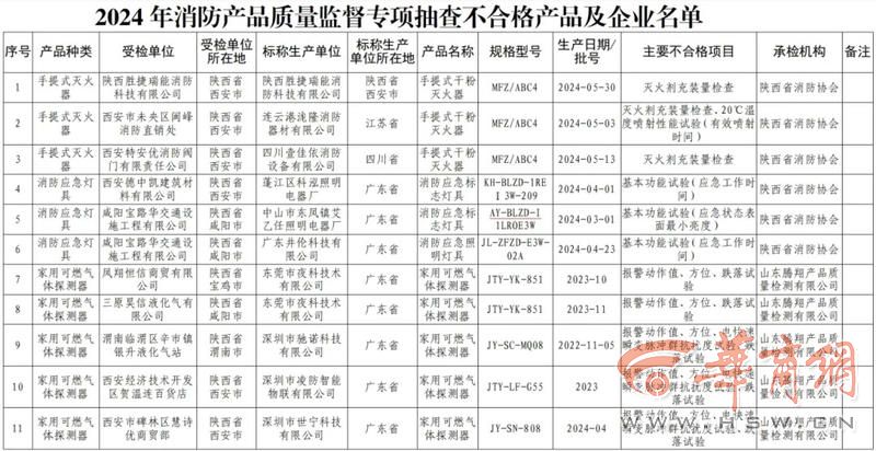 陕西消防产品专项抽查113批次产品 发现11批次不合格