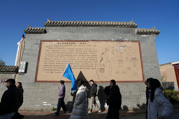 “大家可能会有疑问,为什么我们村能被称为‘中国苹果第一村’?”阿寺村讲解员王静茹解释道,“这不是说我们是全国第一个种苹果的村子,而是上世纪70年代,我们村因苹果获得了十个‘第一’。”她如数家珍地介绍,阿寺村是陕北高原地区第一个引进并栽植苹果的村子,第一个建立苗木繁育场,第一个因苹果用上电,第一个吃上自来水,更重要的是,这里走出了“洛川苹果之父”李新安——第一个因苹果受到毛泽东主席接见的人。