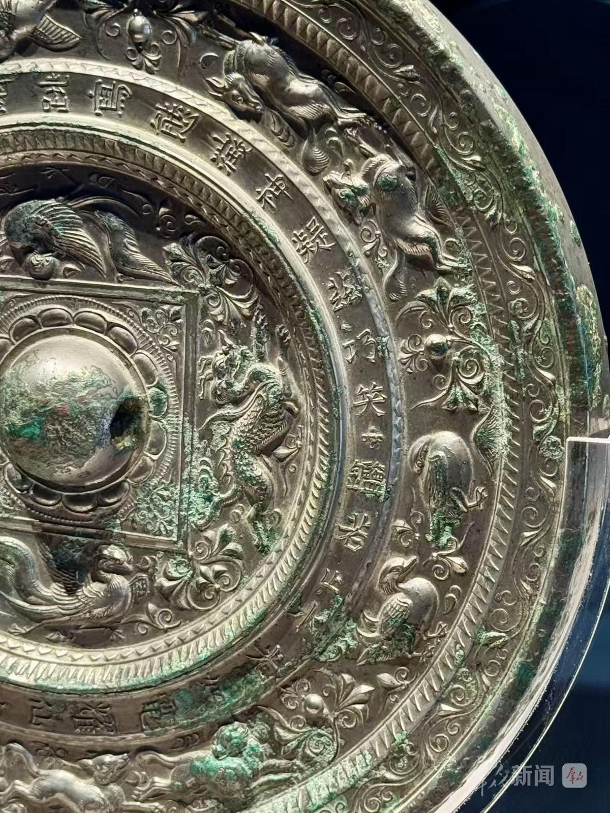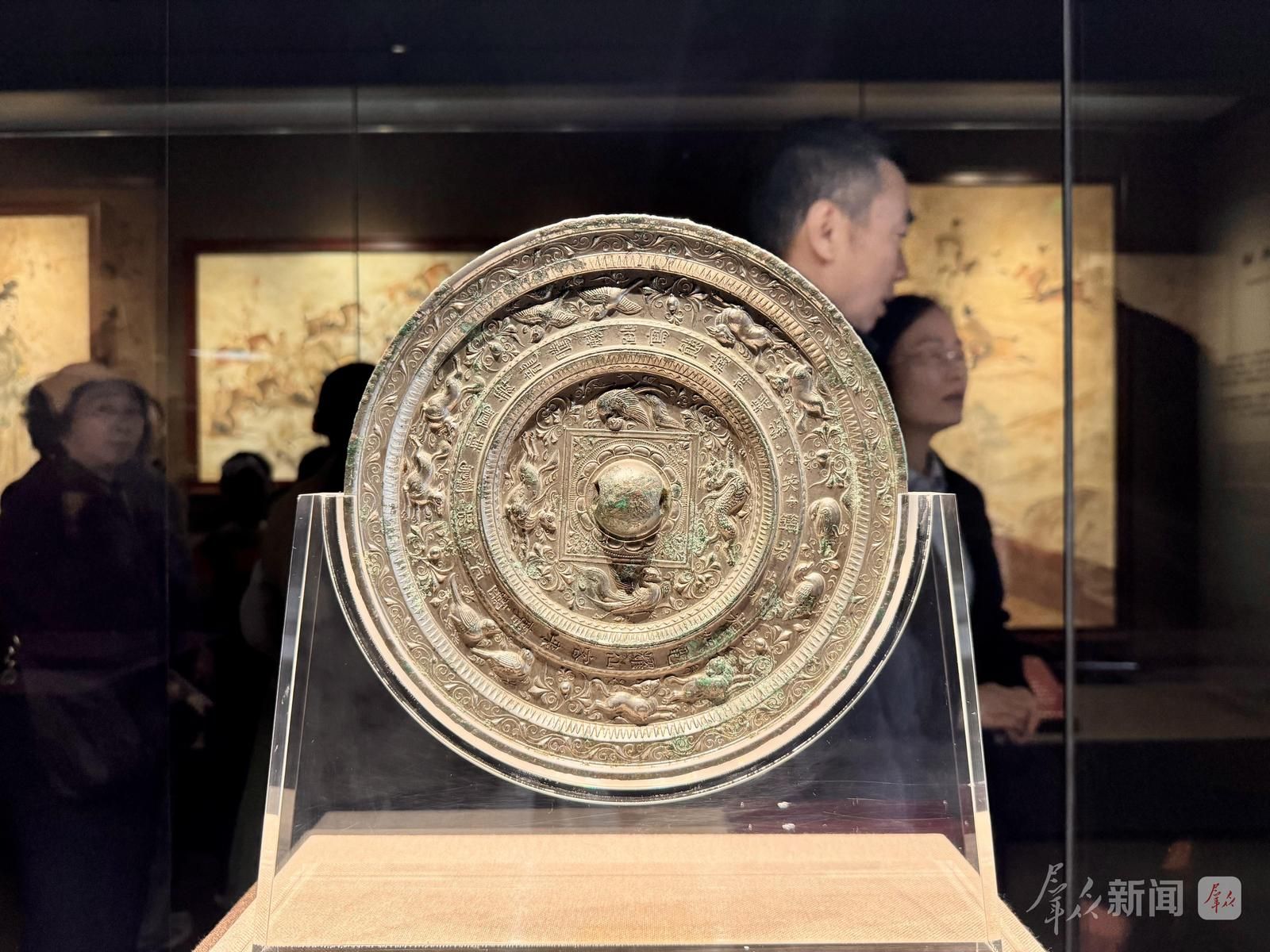 隔着明净的玻璃展柜,游客们正凝神细看,千年岁月并未褪去铜镜的光华。