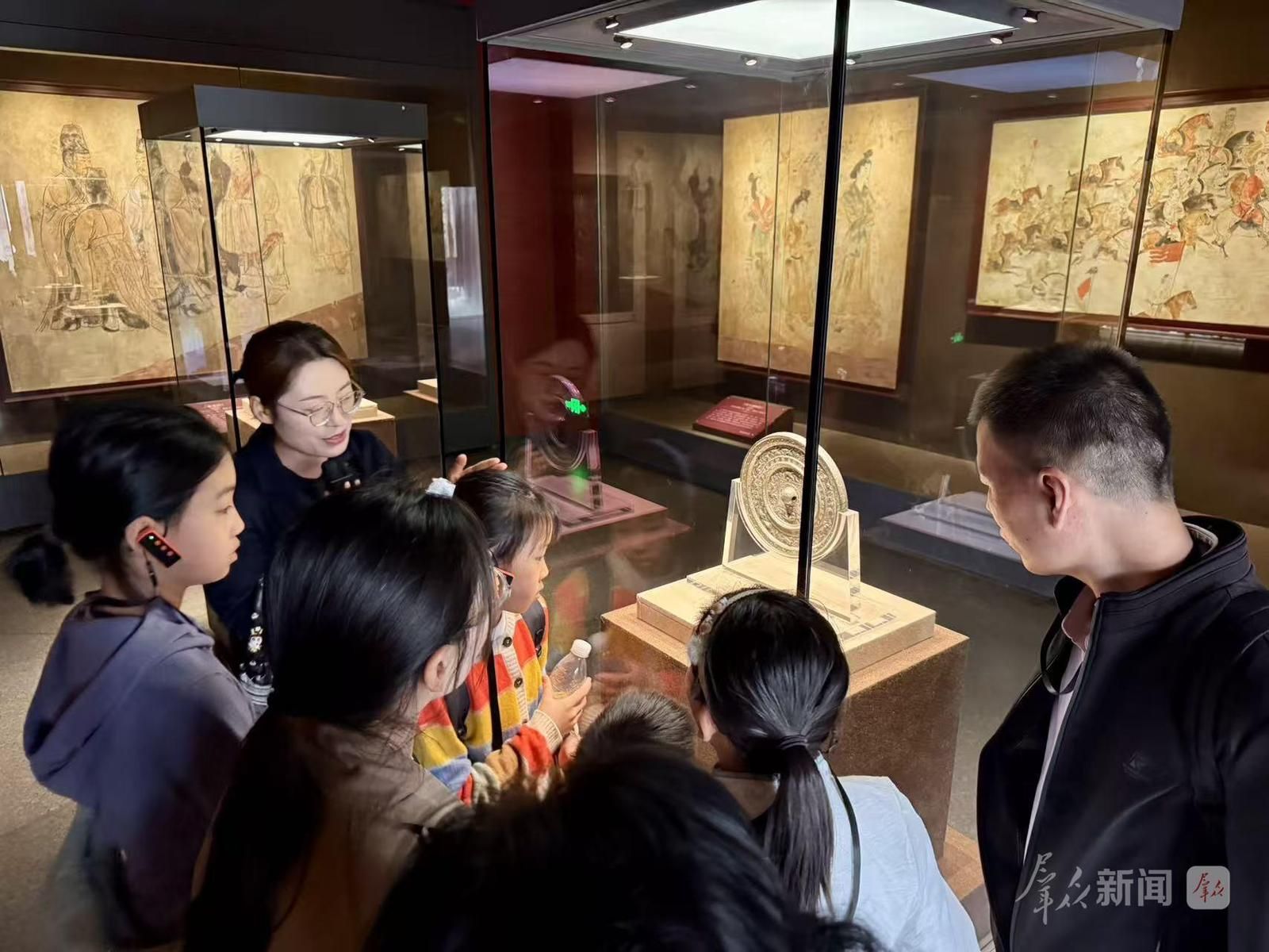 4月7日,在乾陵章怀太子墓博物馆展区内,一面精美的铜镜前围满了慕名而来的游客,人们跟着讲解员逐字辨识镜上的文字,沉醉于铭文的隽永意境。