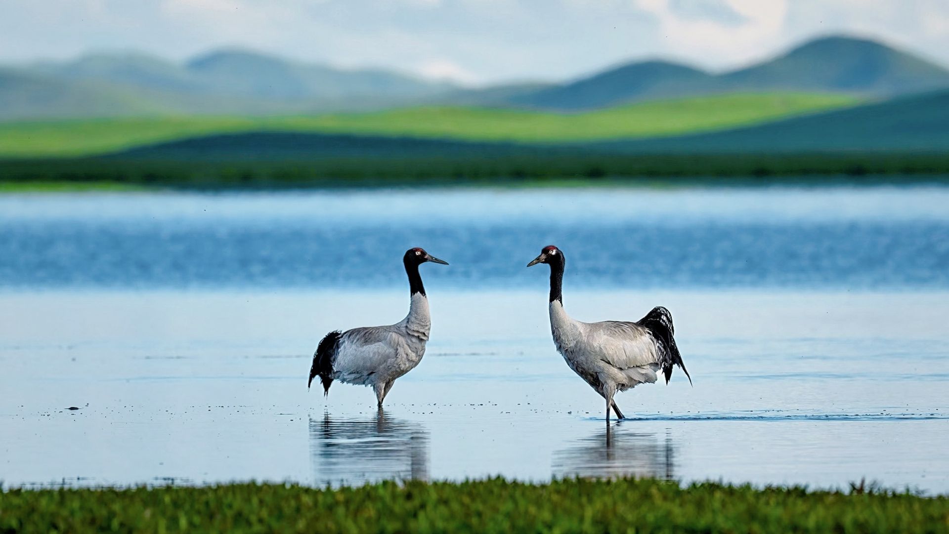 在若尔盖湿地的黑颈鹤。若尔盖县委宣传部 供图