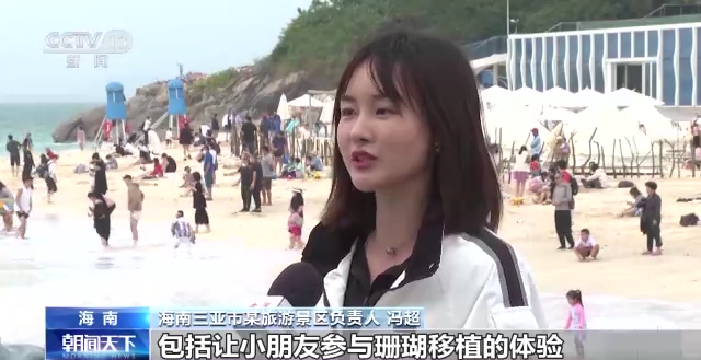 海南三亚市某旅游景区负责人 冯超:像潜水的项目现在预约也都非常火爆,包括让小朋友参与珊瑚移植的体验,让他们去注重海洋环保。