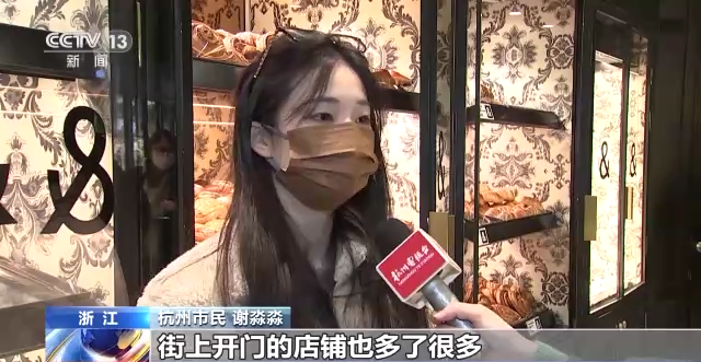 杭州市民谢淼淼:街上开门的店铺也多了很多,商场现在也能开到很晚了,整个氛围都好好多。