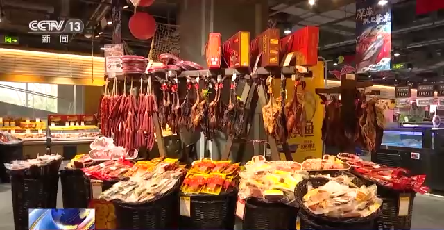 四川成都某超市总经理 牛玲:近期我们销售比较好的商品像现灌香肠,同时预制菜肴消费趋势明显提升。我们准备了超万支年货商品,主要以食品为主供顾客挑选。