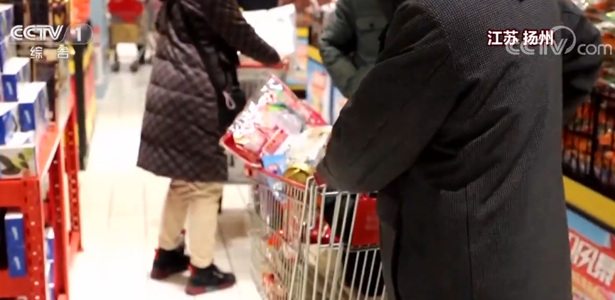 记者注意到,江苏扬州各大商超相继推出“年货”折扣套餐,水果、生鲜等都有不同幅度的优惠活动,市民购物车内的年货摆放得满满当当。