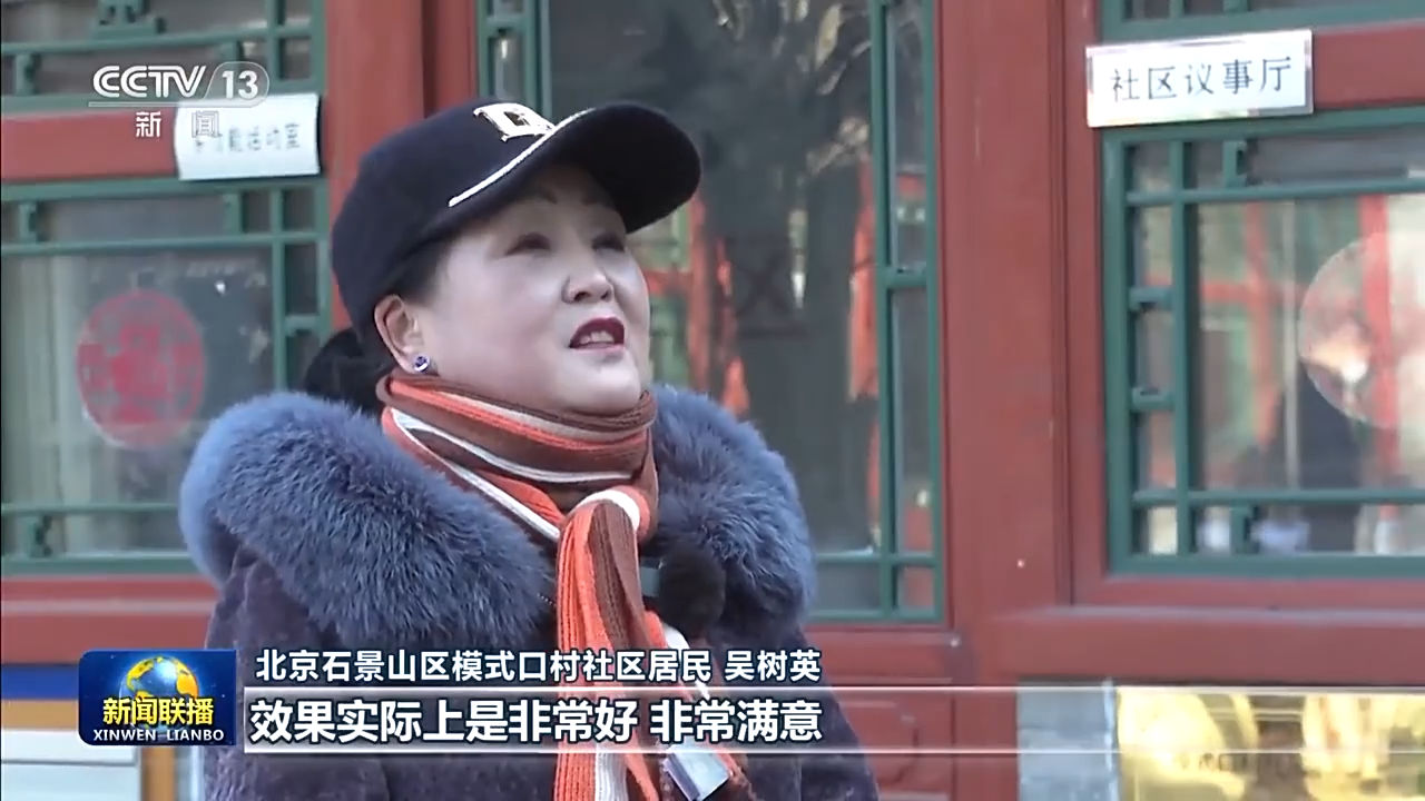 北京石景山区模式口村社区居民 吴树英:我们有什么意见就能积极地沟通,能积极地参与进来,效果实际上是非常好,非常满意。因为群众得到了支持,我感觉很欣慰,大家看这个街和以前的街是不一样了,非常美观,肯定会越来越好。