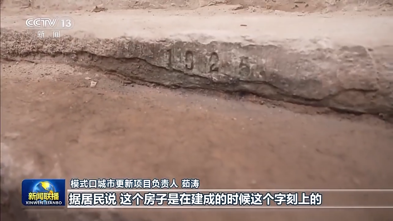 模式口城市更新项目负责人 茹涛:大家看这个,1925这几个字。据居民说,这个房子是在建成的时候把这个字刻上,是居民找到我们拿着老照片说这个事。我们当时找了很多地儿,后来把覆土清下去以后发现了这个1925。所以说我们尊重了居民的意愿,把这些历史的符号给展示出来,让老百姓有个念想。