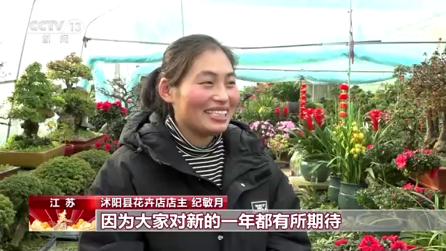 江苏沭阳县花卉店店主 纪敏月:最近还挺忙的,因为大家对新的一年都有所期待,所以说今年开的大红色的花,大红大紫的花就是销量就比较好,价格也比较亲民的。