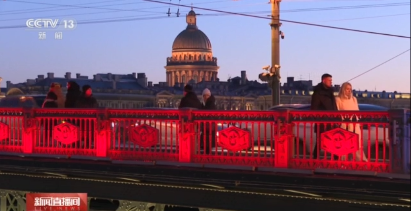 21日,俄罗斯圣彼得堡市中心涅瓦河上的地标性建筑冬宫桥以一袭中国红点亮城市的夜色,庆祝中国农历兔年春节,身披红妆的冬宫桥给圣彼得堡的隆冬季节增添了欢乐的节日氛围。根据圣彼得堡市政府公布的信息,亮灯活动将持续至元宵节。