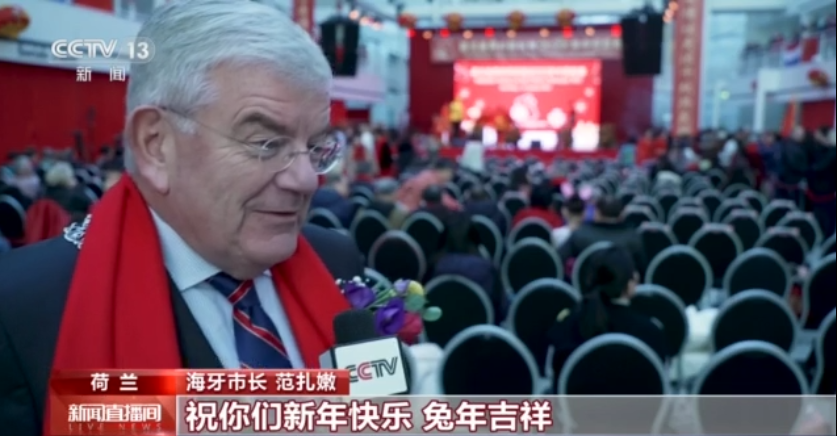 海牙市长 范扎嫩:我要向中国人民致以节日的问候,祝你们新年快乐,兔年吉祥。在荷兰生活着众多华侨华人,他们让我们的社会更加多元,我热爱中华美食,中国文化和中国音乐。