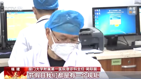 厦门大学附属第一医院急诊科主任 蔺际龑:节假日我们都是有一个规矩,大家都不能请假的,即使正常轮休的时候,就是比方说下了夜班休息在家,所有人电话也都要保持通畅的,可能一旦有突发的公共卫生事件,都会要叫过来。