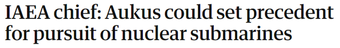 在“奥库斯”协议达成后不久,国际原子能机构总干事格罗西就在访美期间警告,此举将会促使其他国家效仿澳大利亚,进而引发严重的核扩散风险和相关法律问题。
