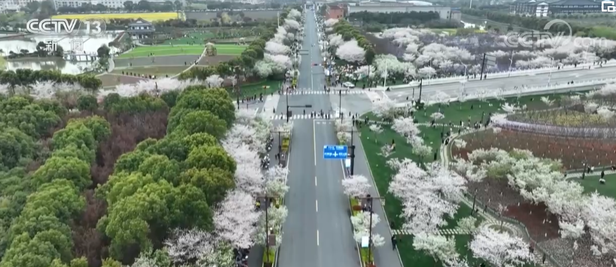 在嘉兴平湖经济开发区的钟溪樱花里,有两万多株、8个品种的樱花,共占地5.7万平方米。每年这个季节竞相开放,吸引了大量的游客,他们带着家人和朋友,赏花踏青、拍照记录,共享春日花海盛宴。当地还抓住时机,组织文艺节目、非遗嘉年华、艺苑大舞台等丰富多彩的活动。