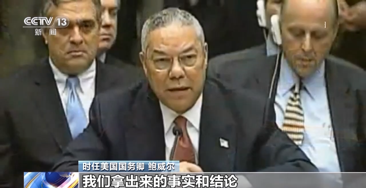 时任美国国务卿 鲍威尔:我们拿出来的事实和结论,完全基于可靠的情报。对于(伊拉克)建造在车轮和铁轨上的生物武器工厂,我们掌握了第一手资料。