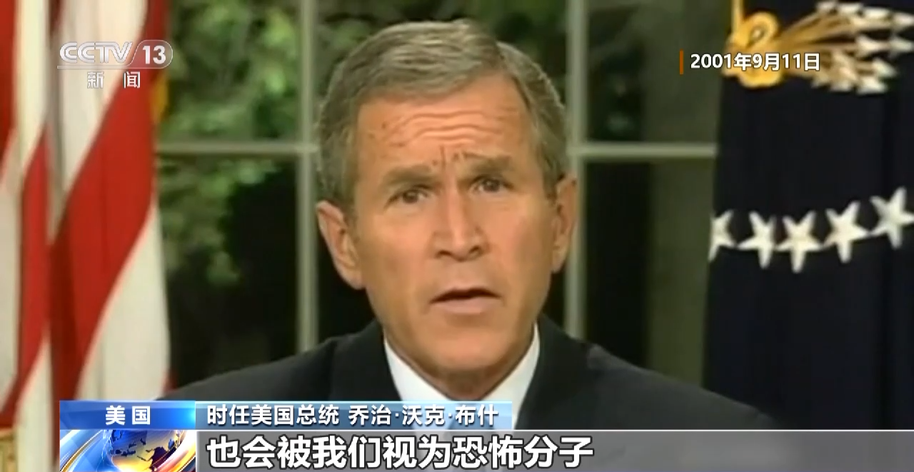 时任美国总统 乔治·沃克·布什:我已下令美国所有的情报机构和警察机构,全力找出肇事元凶并将其绳之以法。胆敢包庇肇事恐怖分子的人也会被我们视为恐怖分子。