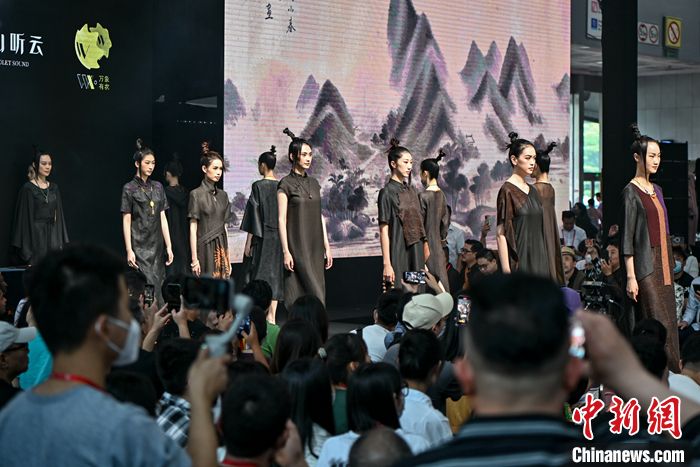 被誉为丝绸界“软黄金”的香云纱,“穿越”约600年历史而来,在现代舞台上展示出新中式的优雅气。第133届广交会正在广州举行,30位海内外模特身着以香云纱为主体设计面料的服装在展馆走秀,在灯光下衣袂飘飘。不少海外采购商驻足拍照,并说“这是中国风格”。