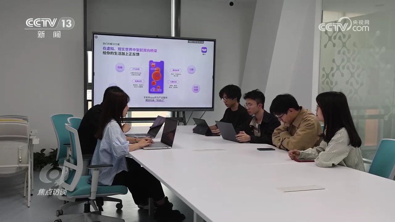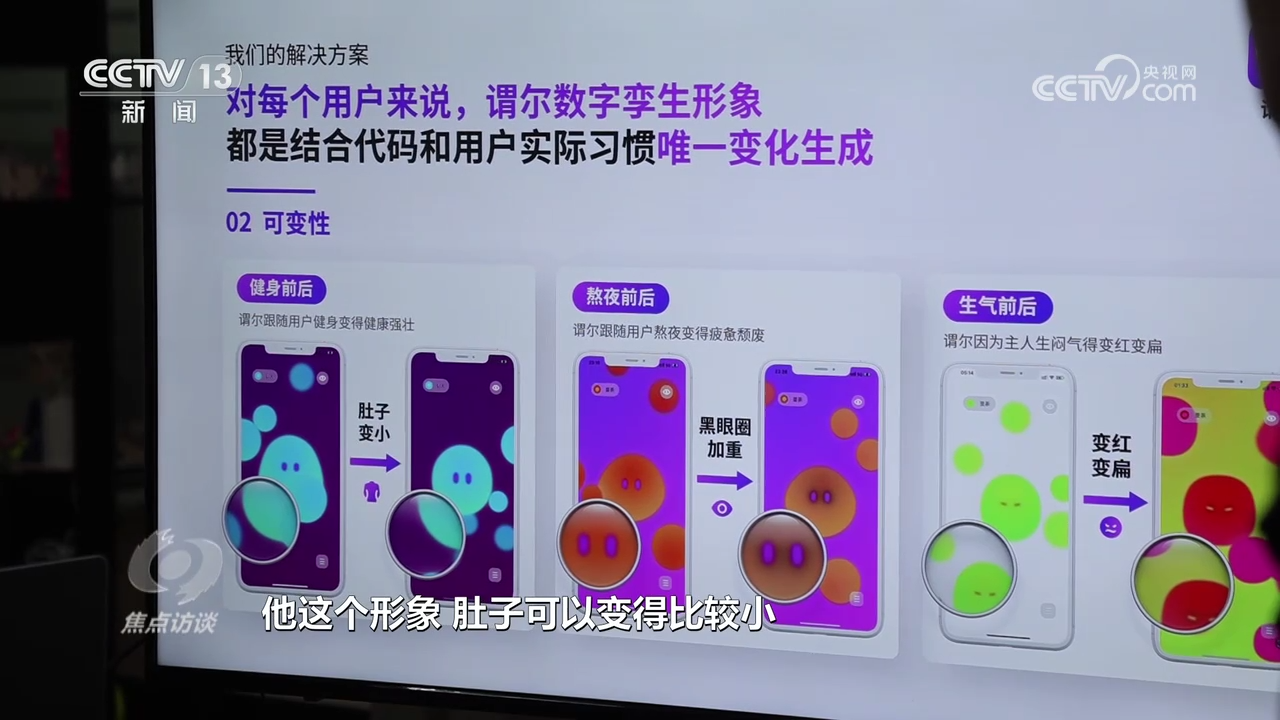 浙江大学计算机科学与技术学院2019级本科生王振阳:“我们用圆滚滚的形象去承载用户一些内在特质,只要用户授权给我们信息,我们可以收集用户不同方面的标签,包括睡眠、运动、健康、APP使用情况,把用户形象映射到虚拟世界里面。”