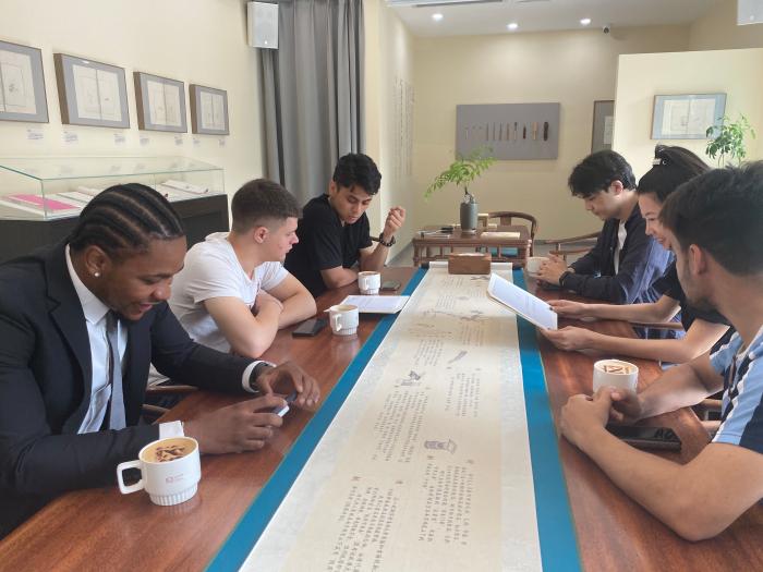 各国青年博主们在讲解员的带领下诵读古诗。 荆雨昕 摄