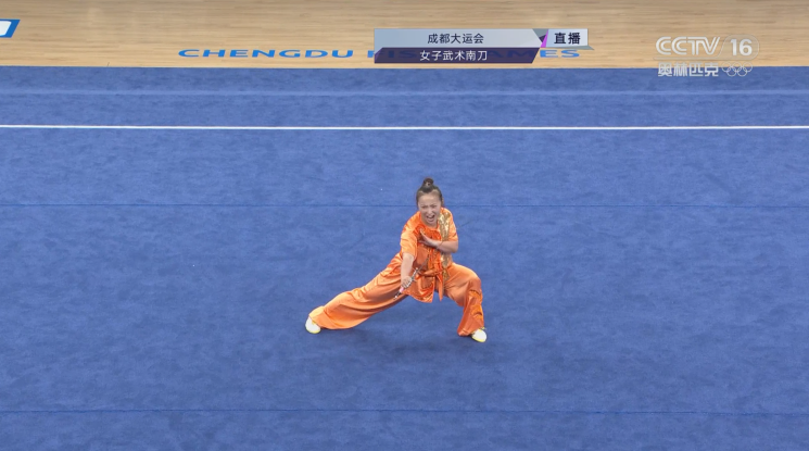 随后的女子南刀比赛中,24岁的宋翠芳以娴熟、精准的刀法,为中国代表团再添一枚金牌,这也是中国代表团收获的第二金。