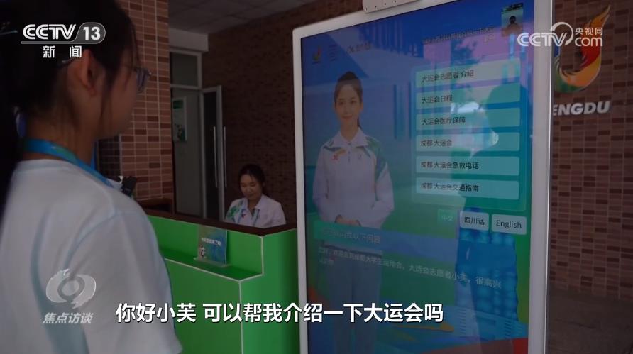 本届大运会的虚拟志愿者小芙,通过先进的语音合成、AI口唇表情驱动、图像处理等技术,能够使用普通话、四川话和英文,和摄像头识别出的对象进行“面对面”的直接交流。这套系统的研发者之一雷晓辉是一名“90后”工程师。