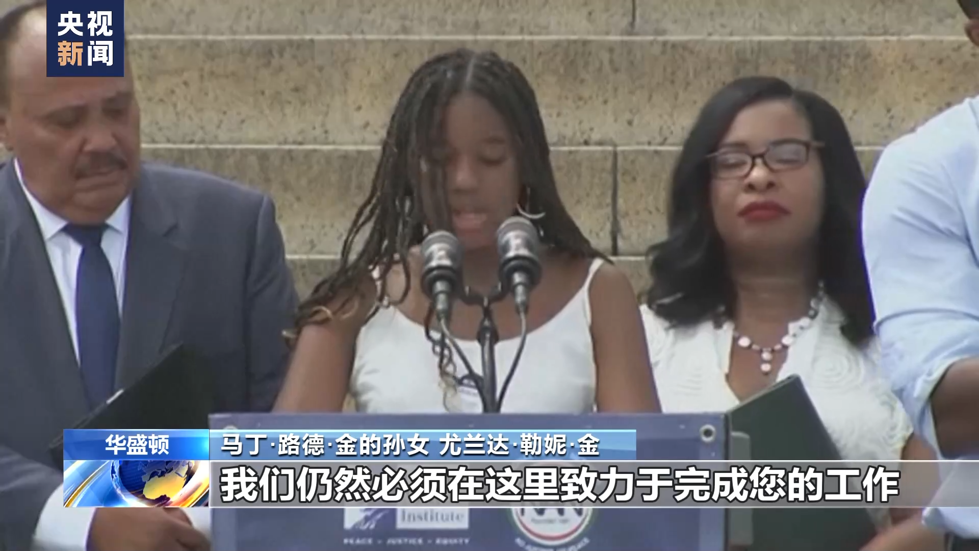 马丁·路德·金的孙女 尤兰达·勒妮·金:如果我今天能和我的爷爷说些什么,我会说,很抱歉,我们仍然必须在这里致力于完成您的工作,最终试着实现您的梦想。如今,种族主义仍然存在,贫困仍然存在。