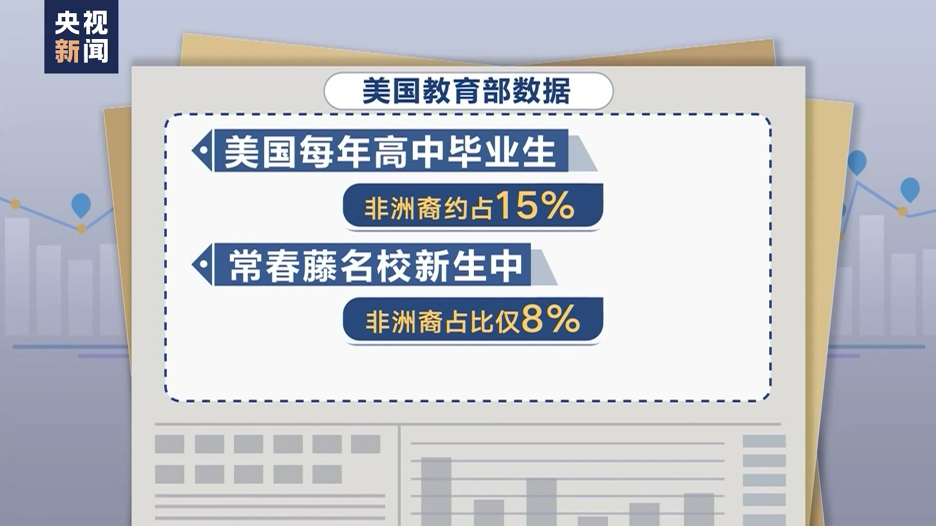 美国教育部的数据则显示,美国每年高中毕业生中非洲裔约占15%,而普林斯顿大学、康奈尔大学等常春藤名校新生中非洲裔占比仅为8%。仅三分之一的非洲裔在进入大学后能顺利毕业,这一比例是白人的一半。和白人同学相比,非洲裔学生背负更多学费贷款,经济状况更差,这成为他们辍学的主因。