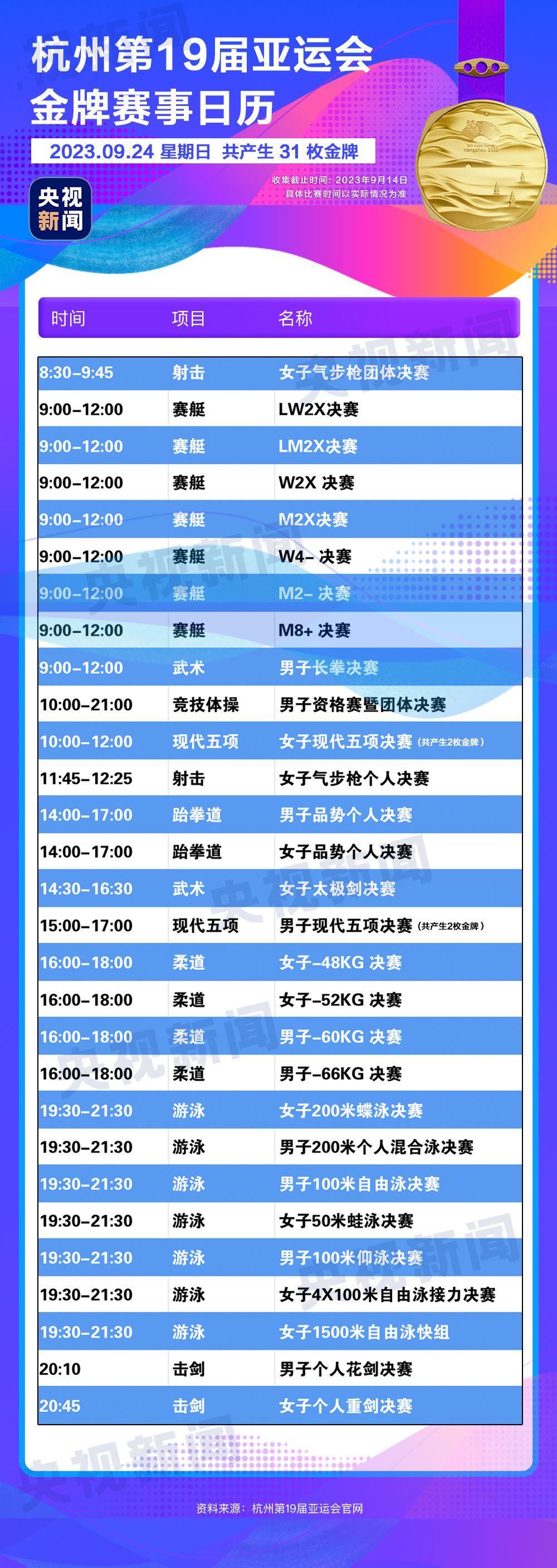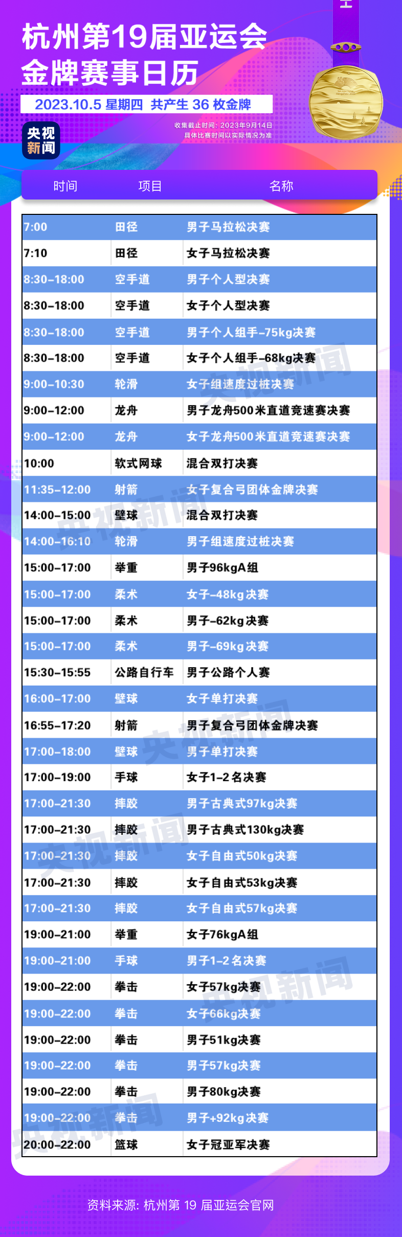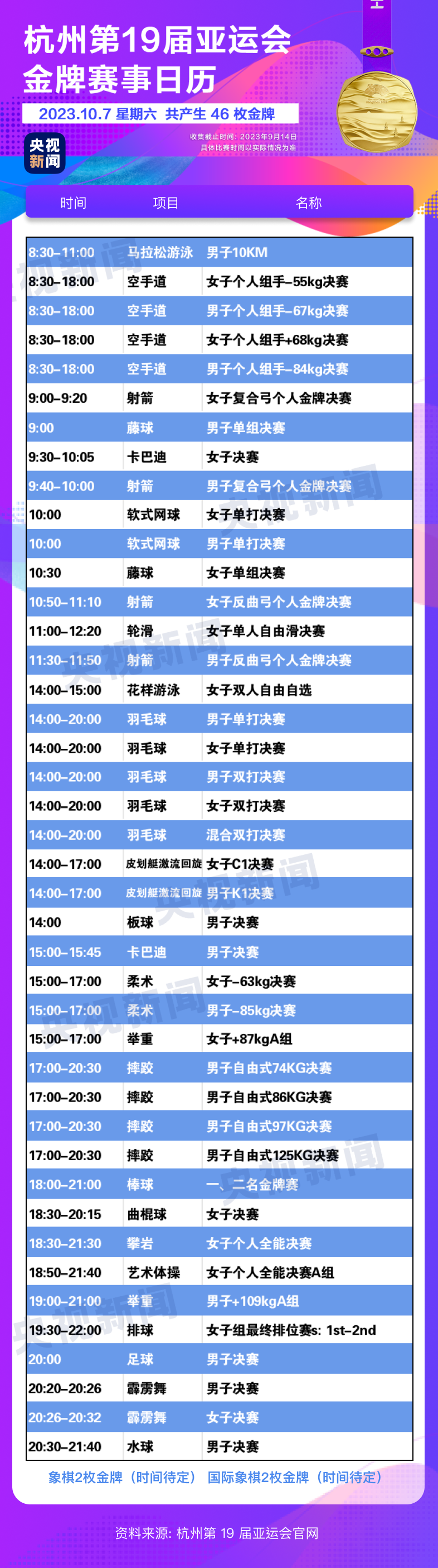 杭州亚运会精彩赛事别错过!快收藏这份金牌观赛日历
