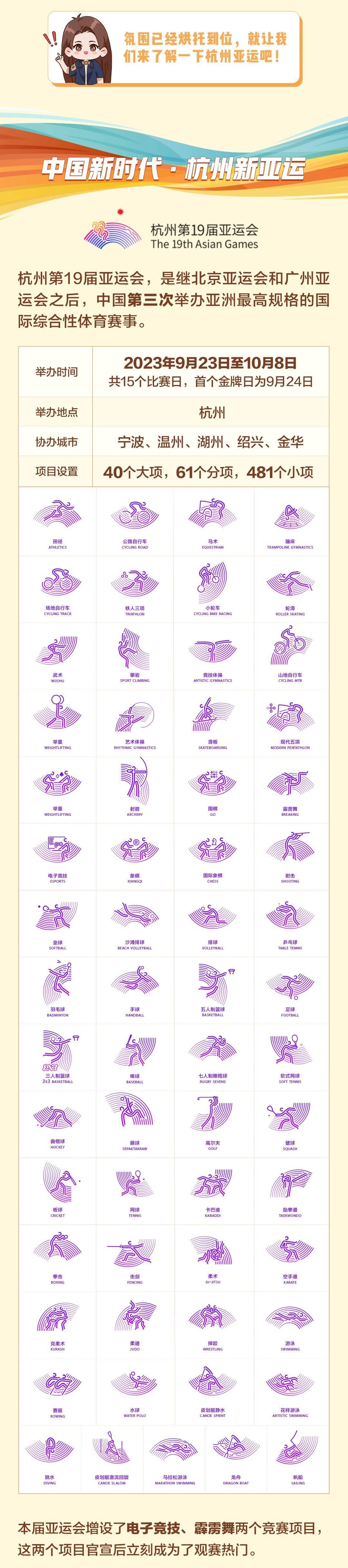 接下来跟着小编一起,一图了解杭州亚运会吧↓