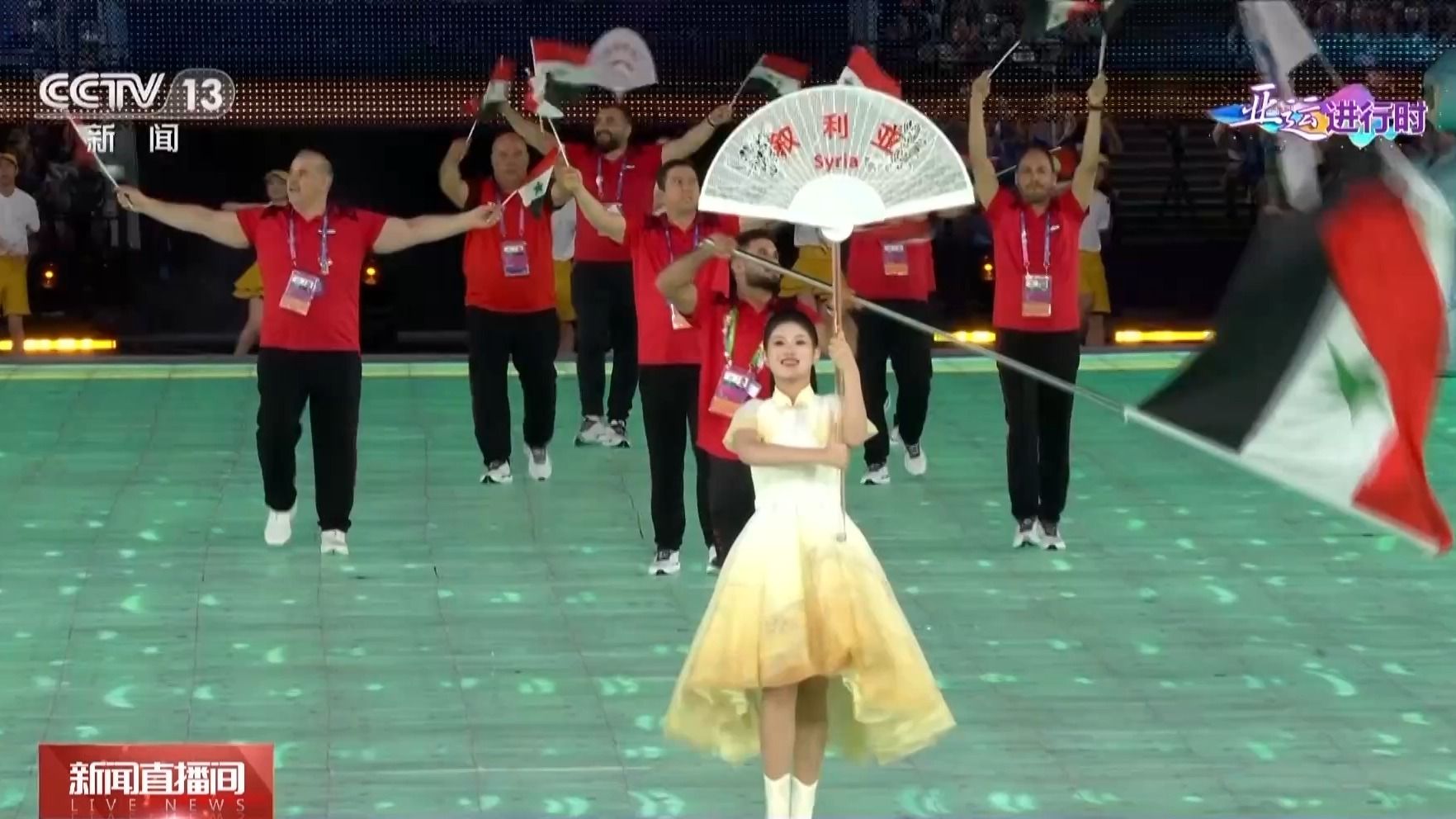 在杭州亚运会开幕式上,艾哈迈德·古松作为叙利亚体育代表团的旗手领衔出场,全场爆发的欢呼声,他犹然在耳。当时,他站在场地中央,久久不愿离去,高高挥舞叙利亚国旗,向全场观众致敬。