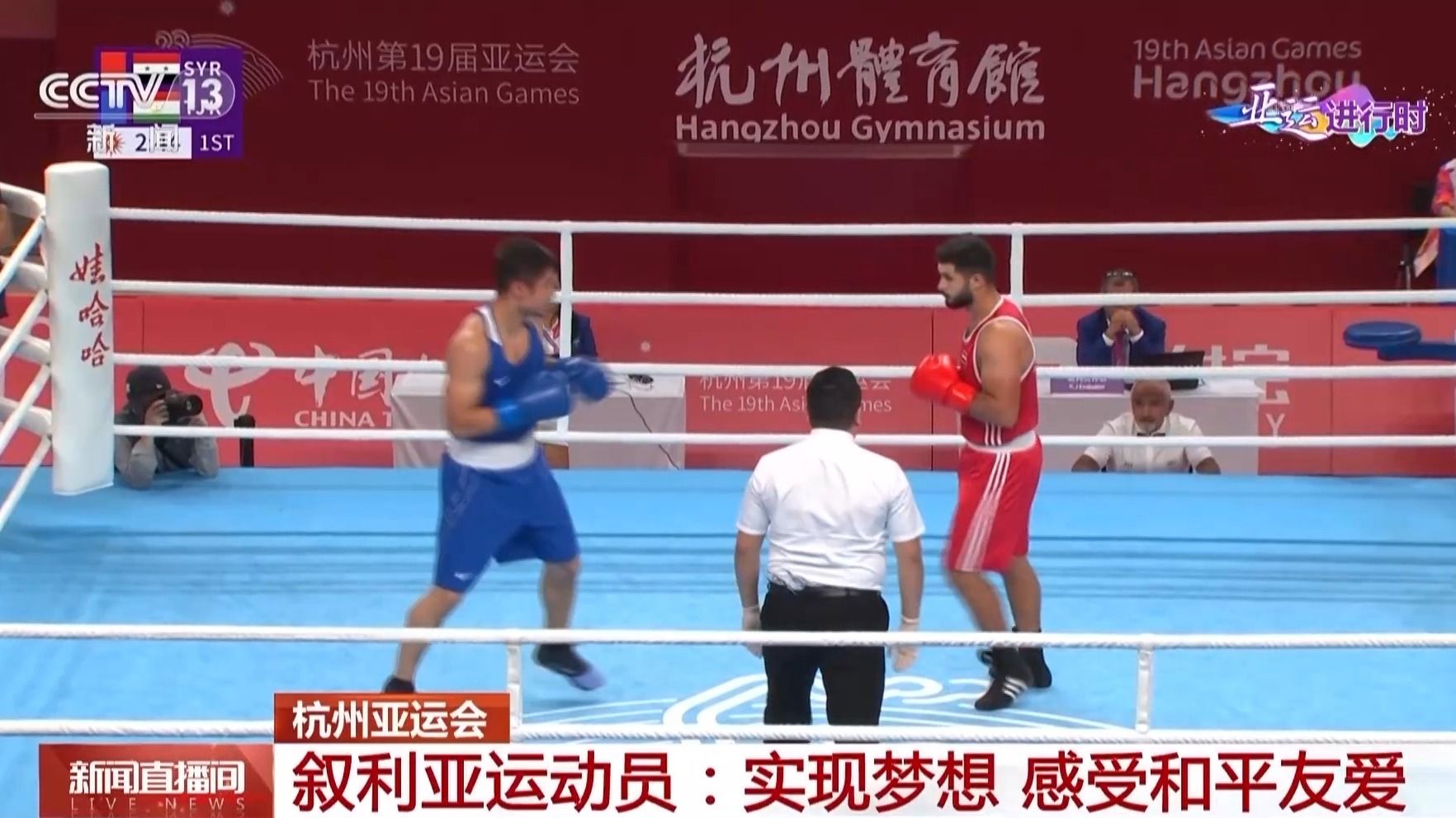 今年亚运会,叙利亚代表团共有8名运动员参加拳击、摔跤、田径、举重和马术等项目。古松和他的爸爸,以及哥哥三人也一同来到了杭州,而这已经不是他们第一次来到中国。2010年,古松的哥哥获得了广州亚运会拳击项目的奖牌。此后,古松也从2016年起,两度来到中国比赛。在中国实现梦想的同时,古松更收获着温暖。