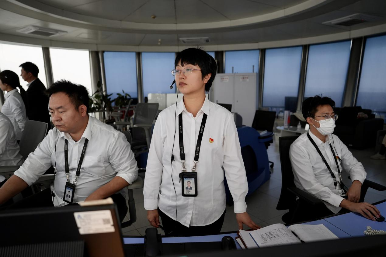 曹航在东北空管局沈阳塔台。人民网记者 周颂雪摄